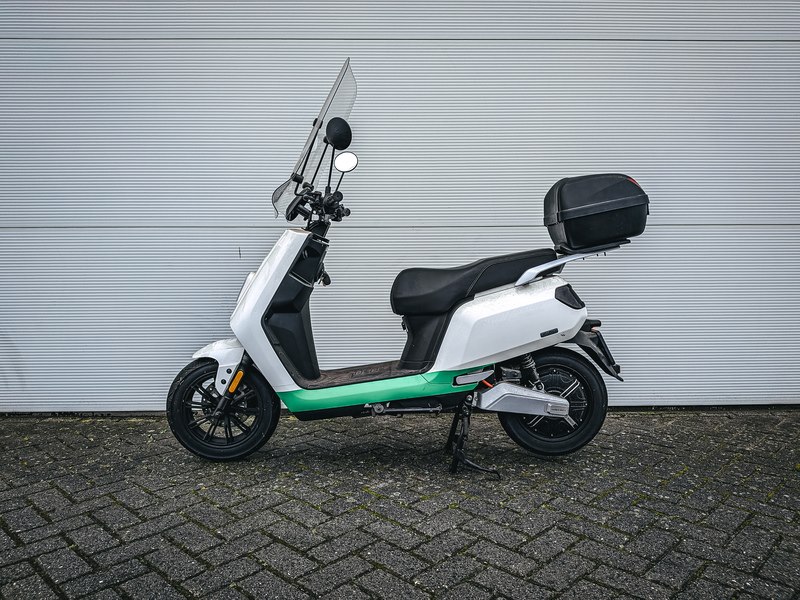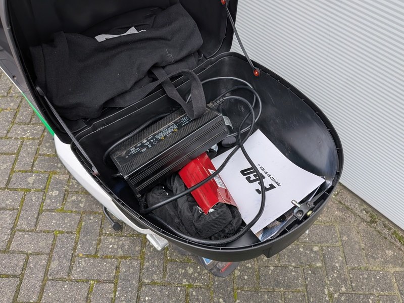 Merk: IVA Product: e- scooter BouwJaar: 2022 Specificaties: Basiskenmerken Kenteken: FNL-06-K Chassisnummer (VIN) : LV2NYK309N1001951 Datum eerste toelating: 15 december 2022 Afgelezen tellerstand: 274 km Aantal sleutels: 2 Technische gegevens Brandstof: elektrisch Motorcode: CH600R120 EM*RB Continue vermogen: 1 kW Max. constructiesnelheid: 25 km/h Maten & Gewichten Voertuig lengte: 1.890 mm Voertuig breedte: 720 mm Voertuig hoogte: 1.110 mm Wielbasis: 1.370 mm Massa rijklaar: 72 kg Inclusief • Acculader • Hangslot
