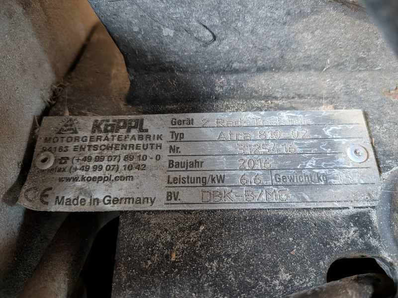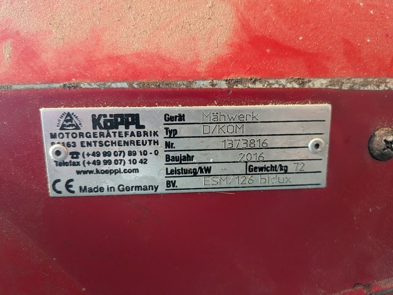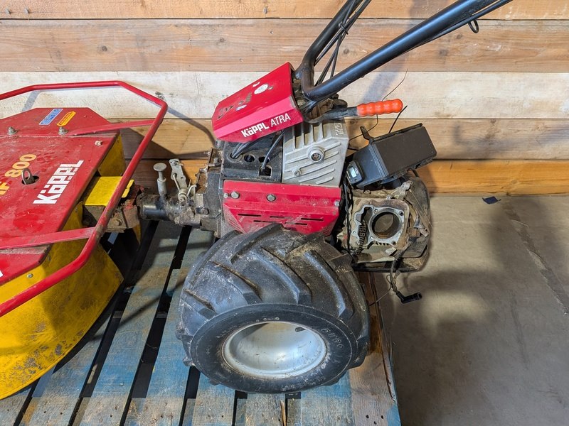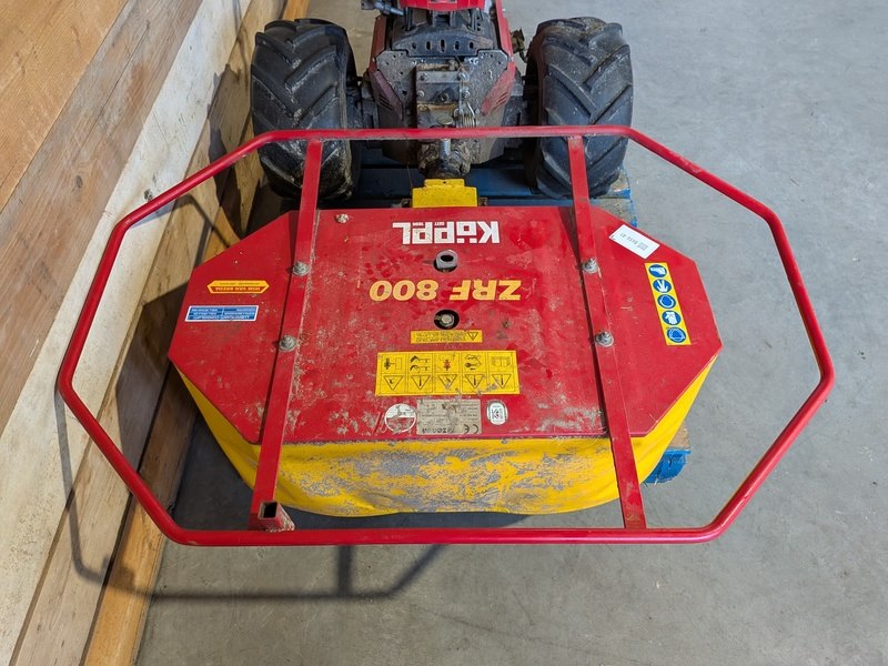 Merk: Köppl Product: 2-wielige werktuigdrager BouwJaar: 2016 Conditie: Defect Specificaties: Basiskenmerken Serienummer: 3125416 Technische gegevens Vermogen: 6,6 kW / 9 pk Gewicht: 137 kg Trommelmaaier Merk: Zanon Type: ZRF 800 Alta Maaibreedte: 820 mm Gewicht: 85 kg Aantal messen: 6 messen (op dubbele schijven) Benodigd vermogen: 10 tot 14 pk Afmetingen: ca. 1.230 x 970 x 430 mm Messenbalk Merk: Köppl Type: D/KOM Serienummer: 1373816 Bouwjaar: 2016 Gewicht: 72 kg Inclusief • Reserveonderdelen werktuigdrager