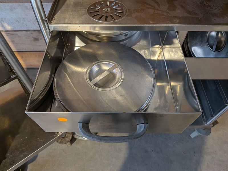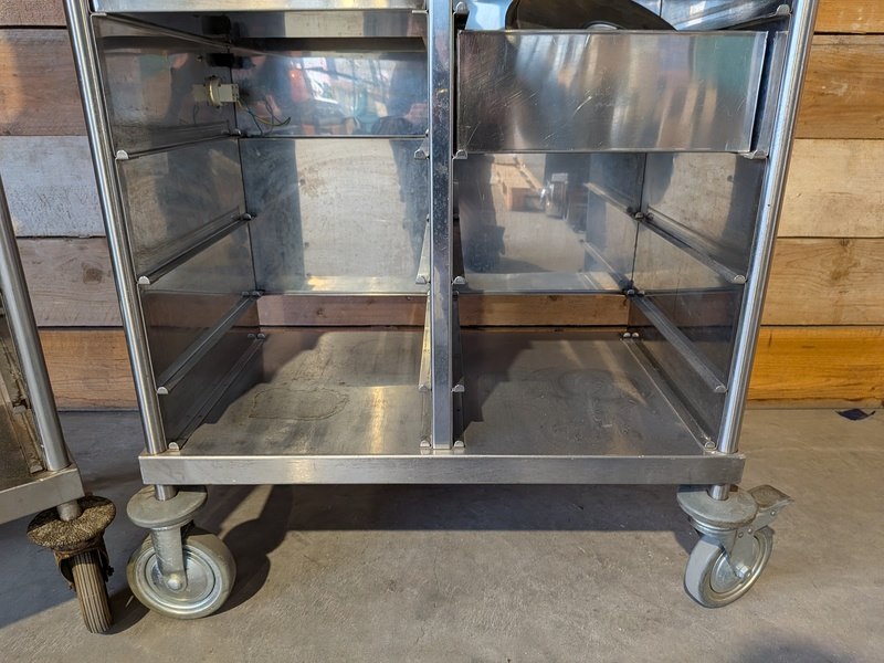 Merk: Animo Product: Koffie- en/of drankencontainer op verrijdbare RVS-wagens Materiaal: RVS Conditie: Gebruikt