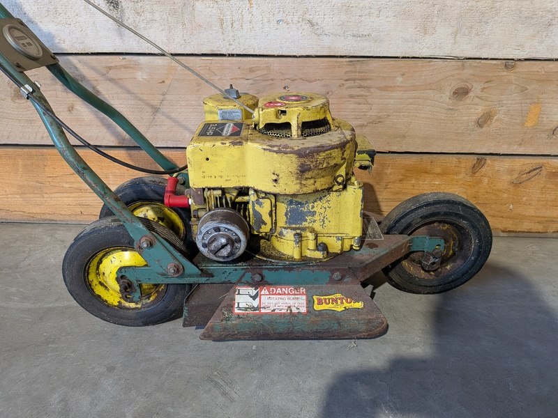Merk: Bunton Product: Grasmaaier Conditie: Gebruikt Specificaties: Basiskenmerken Serienummer: RRB123778 Technische gegevens Motor: Briggs & Stratton 3.5 HP