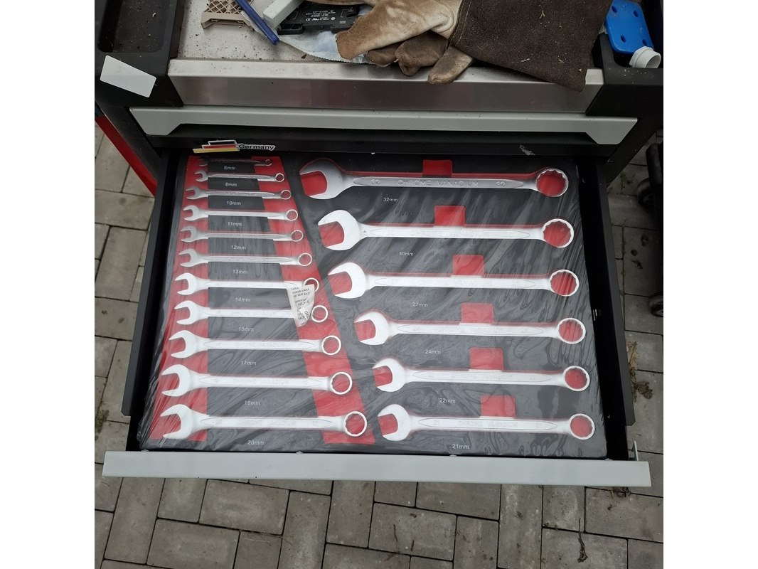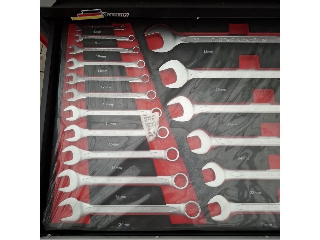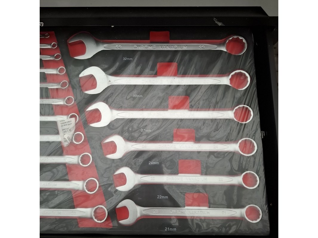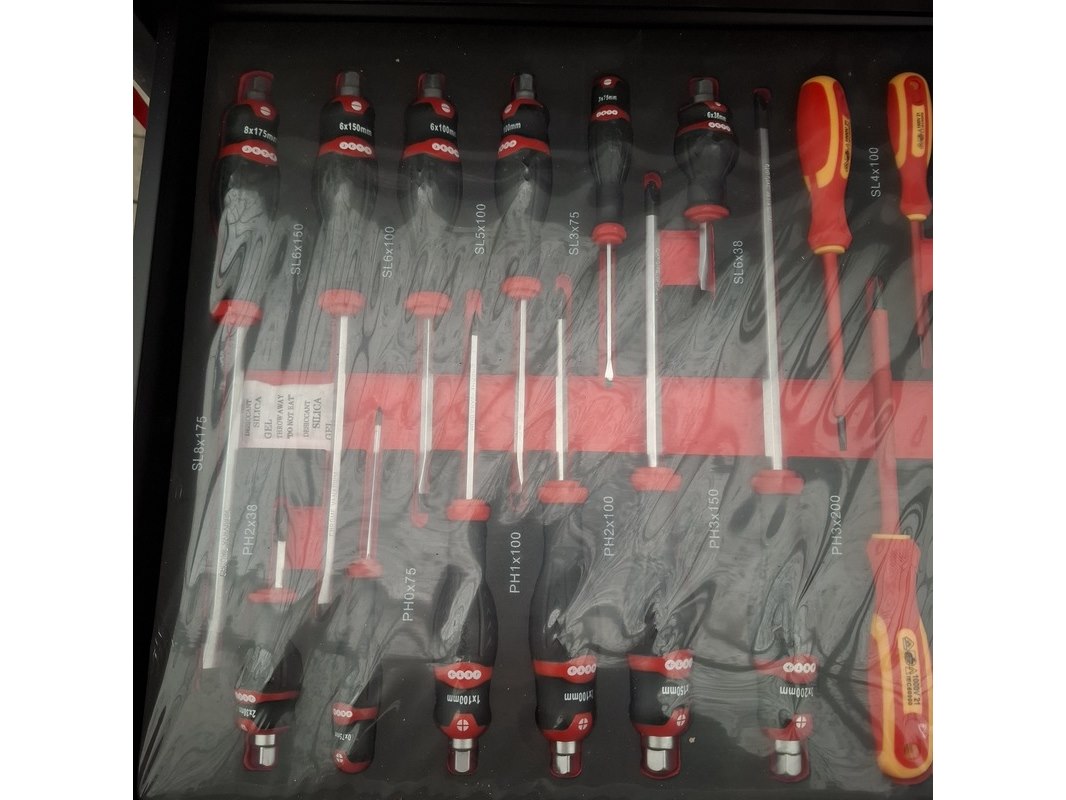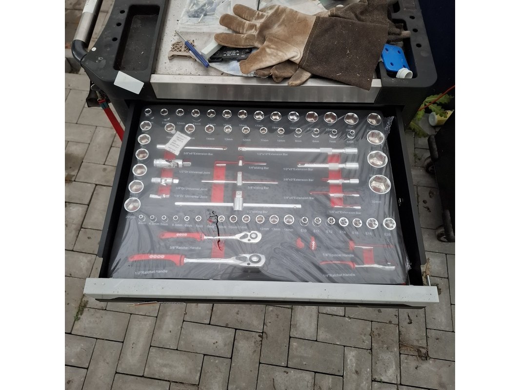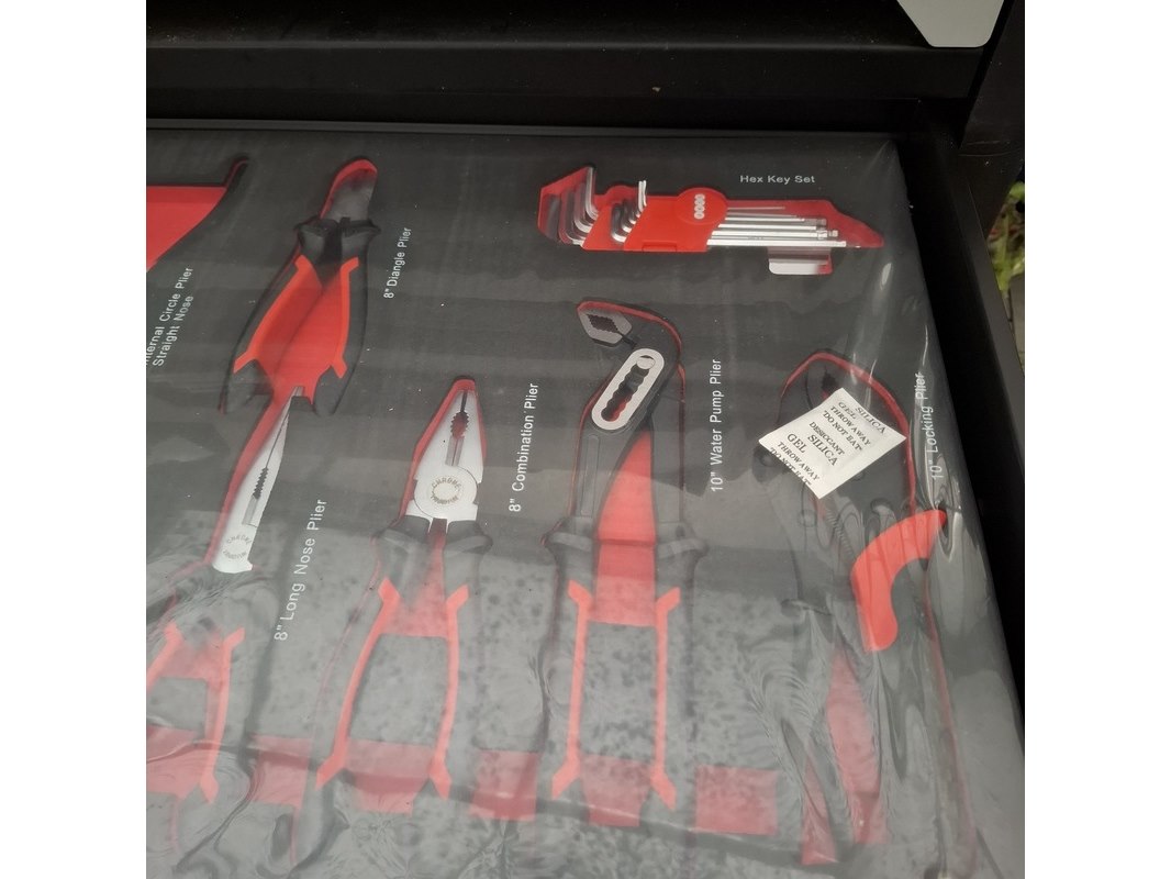 Merk: Airforce Jet Product: Gereedschapskar met inhoud Afmeting: lxbxh ca. 80x46x97 cm Specificaties: Inhoud bestaande uit o.a. Ring steeksleutels, schroevendraaier set, tangen, inbus sleutels, hamer en vijlen, torx sleutels