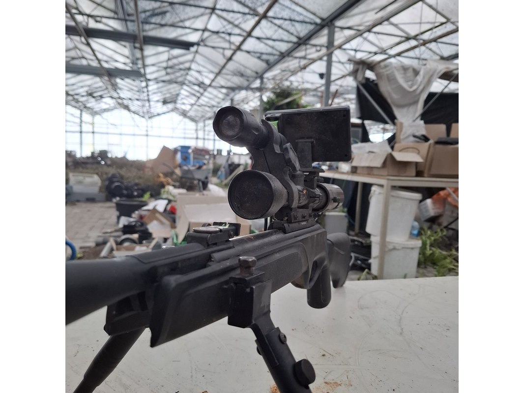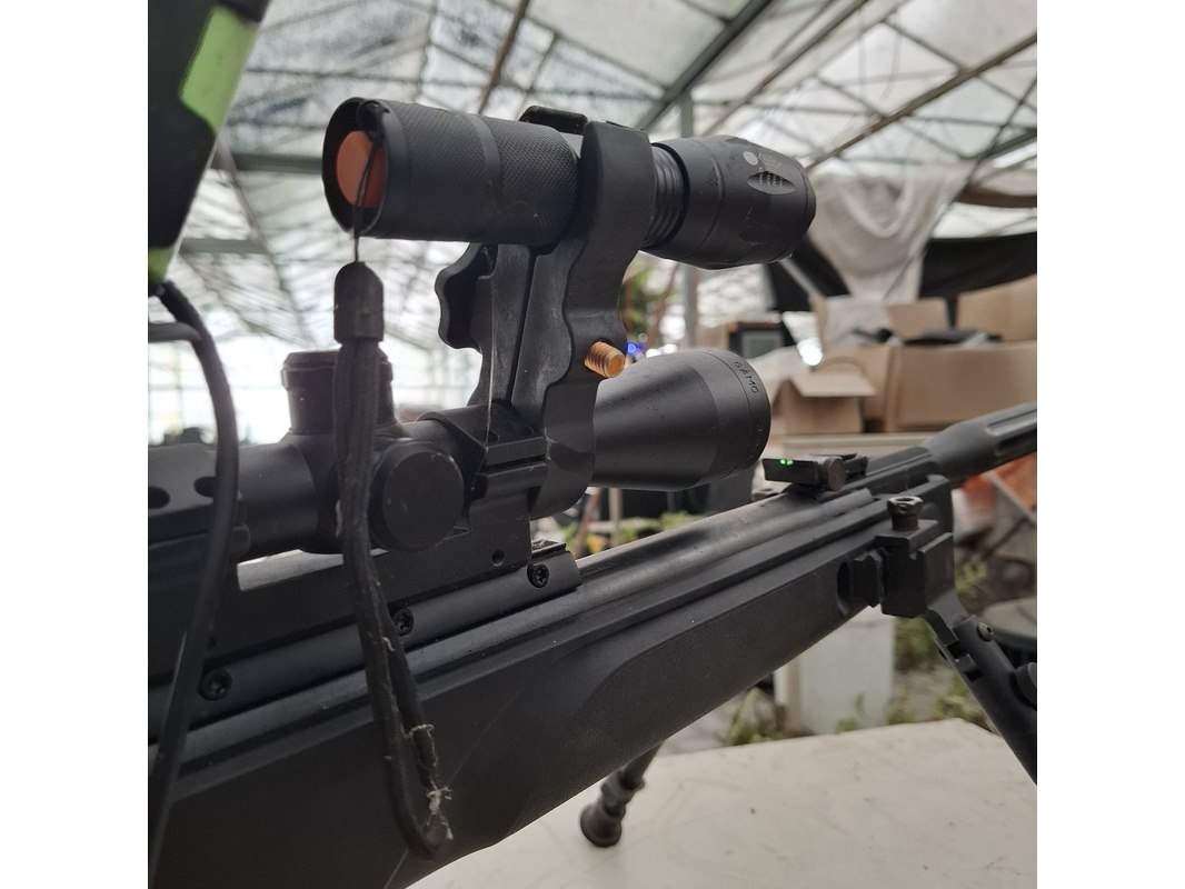 Merk: Gamo Product: Luchtbuks Afmeting: Lengte ca. 116 cm Conditie: gebruikt Specificaties: In draagtas. Uitgerust met zaklamp, statief, kijker en display