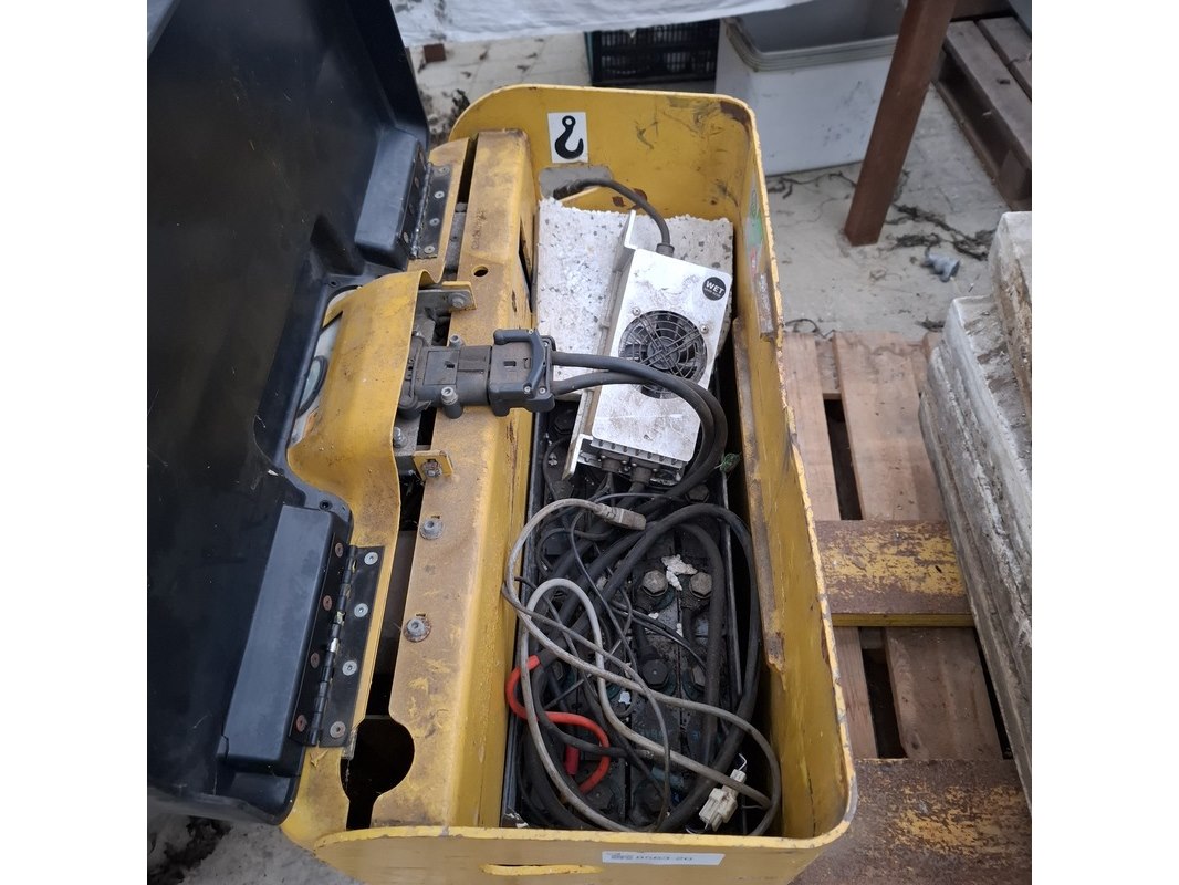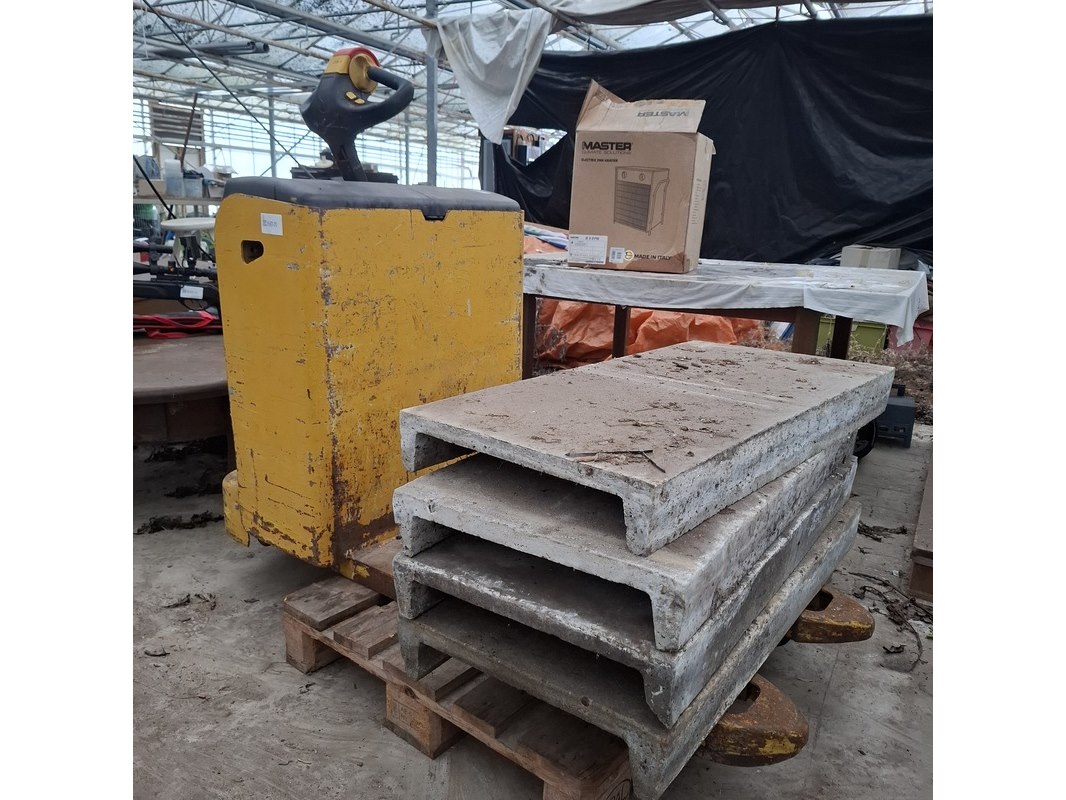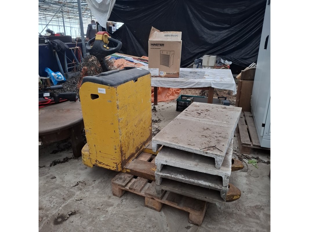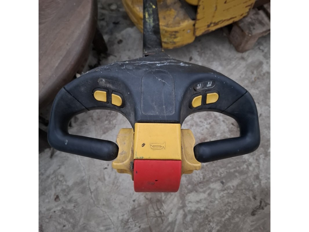 Merk: Yale Product: Elektrische palletwagen BouwJaar: 2006 Conditie: gebruikt Specificaties: Capaciteit 2200 kg Inclusief sleutel. Accu lader ontbreekt. Gaat niet aan, accu leeg. Eigen gewicht ca. 530kg Let op: Er zijn geen hijs of hef middelen aanwezig.