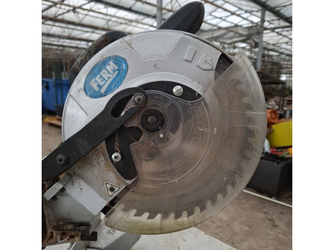 Merk: Ferm Product: Afkortzaag Afmeting: Diameter 255 mm Specificaties: 230V 50Hz 1600W