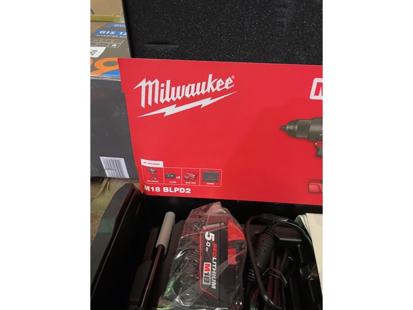 Merk: Milwaukee Product: Accu Klopboormachine Set Conditie: nieuw Specificaties: v.v. 2x Accu 18V, 5,0 AH,(snel)-oplader, in koffer