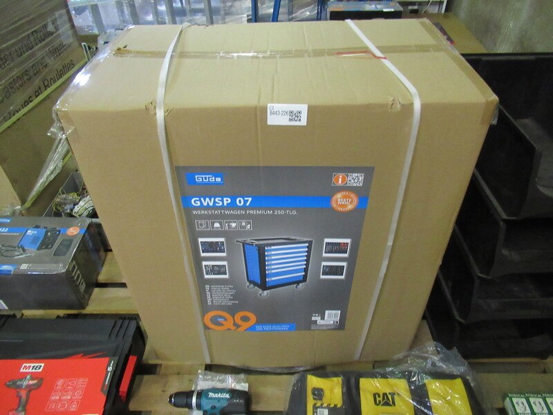 Merk: Gude Product: Gereedschapwagen gevuld Afmeting: ca. 460x683x980 mm Conditie: nieuw Specificaties: 7 laden, 250-DLG, 67,6 Kg, afsluitbaar (2 sl)