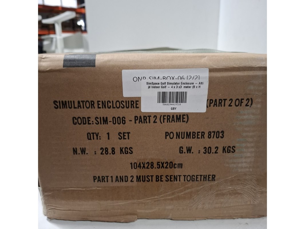 Merk: Simspace golf enclosures Product: Indoor golf slagkooi Afmeting: 4W x 3H x 3D meter Conditie: nieuw Specificaties: De SimSpace Golf Enclosure 4 x 3 x 3 meter biedt een stevige en veilige basis voor het opzetten van je eigen indoor golfomgeving. Deze uitvoering bestaat uitsluitend uit een frame met een rondom gespannen doek. Het product bevat geen impact screen, launch monitor of simulatorsoftware, en vormt daarmee de ideale basis voor wie zelf een persoonlijke golfopstelling wil samenstellen.