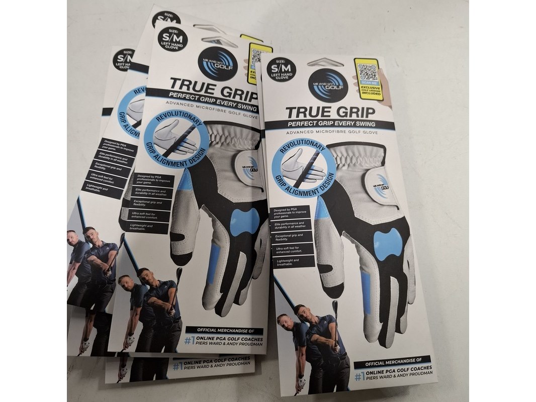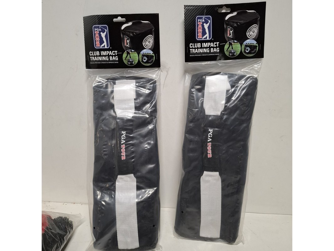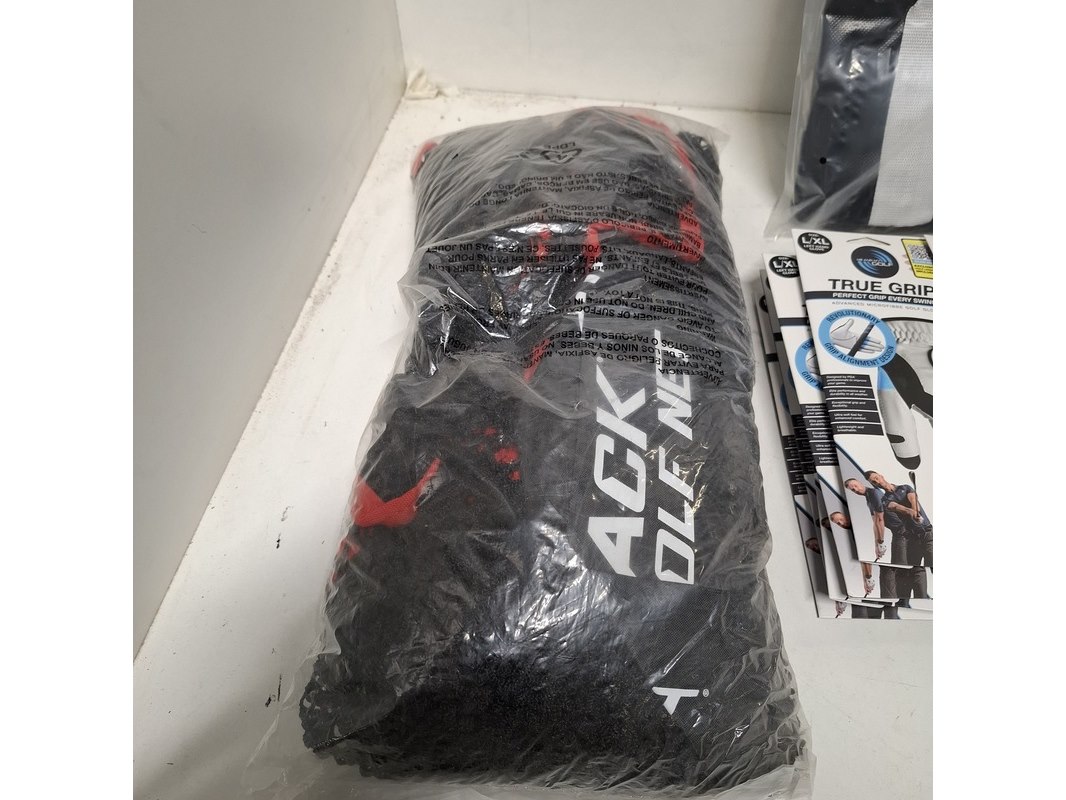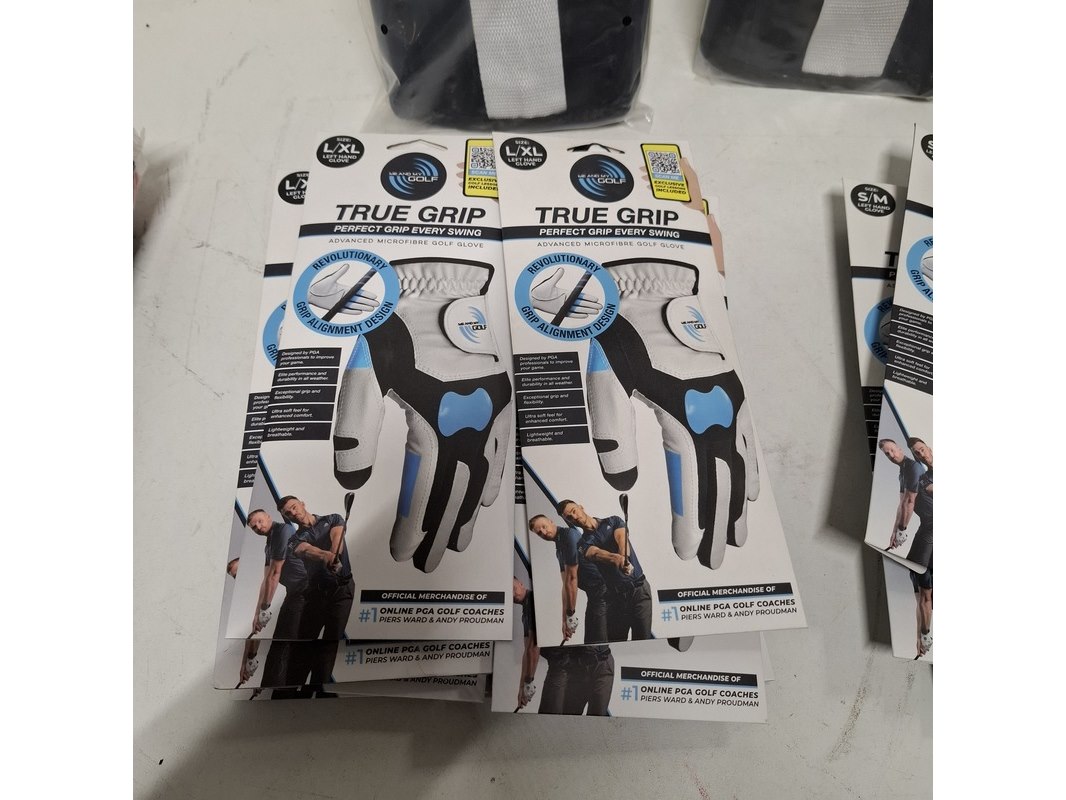 Product: Assortiment golf accessoires Conditie: nieuw Specificaties: bestaande uit o.a. : 10x golfhandschoen L/XL links, 7x golfhandschoen S/M links, 2x club impact trainingstas, golfnet Haack 100
