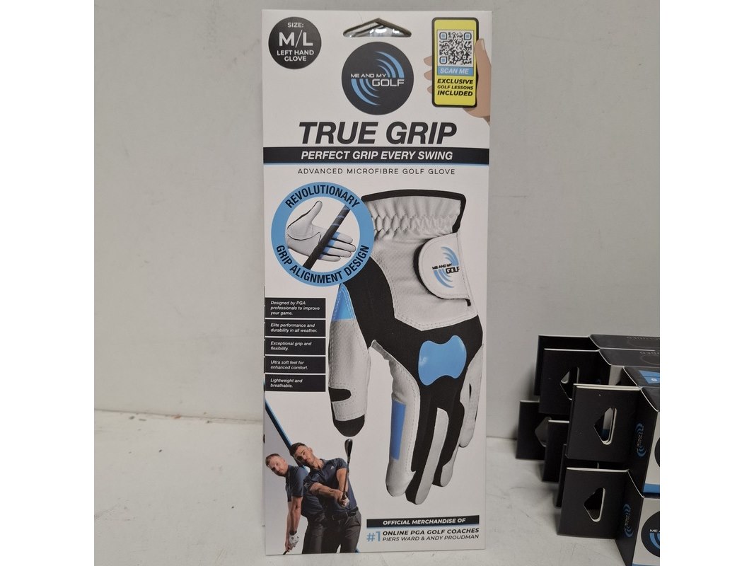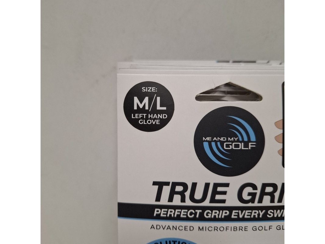 Product: Golfhandschoen M/L met 8x stroke trainer Conditie: nieuw Specificaties: handschoen links