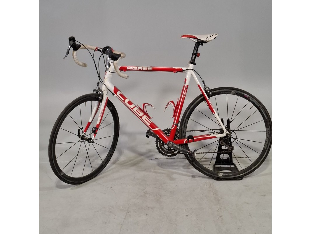 Merk: Cube Product: Racefiets Afmeting: Framemaat ca. 61 cm Conditie: gebruikt Specificaties: 3x9 versnellingen Uitgerust met Easton sportstuur, Shimano Altegra derailleur, Shimano trapperset.