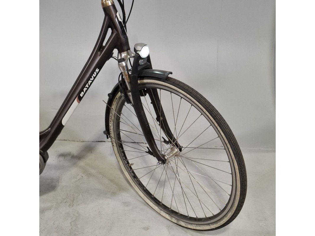 Merk: Batavus Product: Elektrische damesfiets Afmeting: Framemaat ca. 53 cm Conditie: gebruikt Specificaties: 7 versnellingen Geveerde voorvork en zadelpen Inclusief fietscomputer en accu, Remmen defect Exclusief acculader en sleutels. Accu staat op slot.