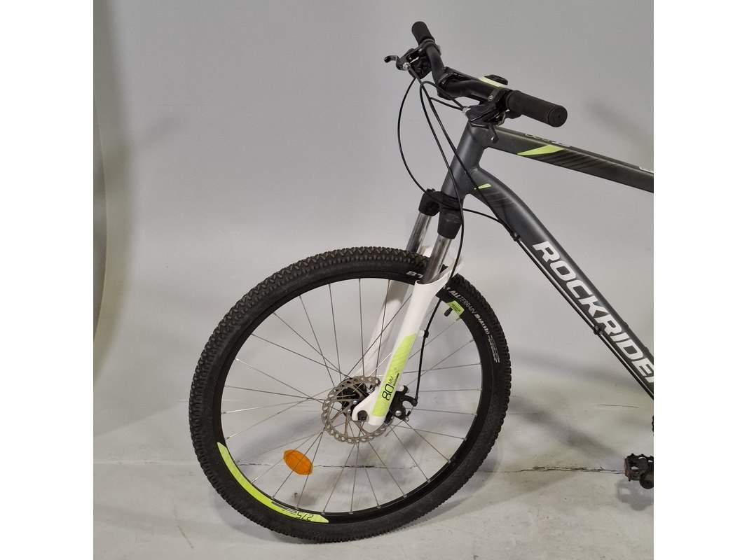 Merk: Rockrider Product: Mountainbike Afmeting: Framemaat ca. 50 cm Conditie: gebruikt Specificaties: Geveerde voorvork 3x8 versnellingen Schijfrem voor en achter