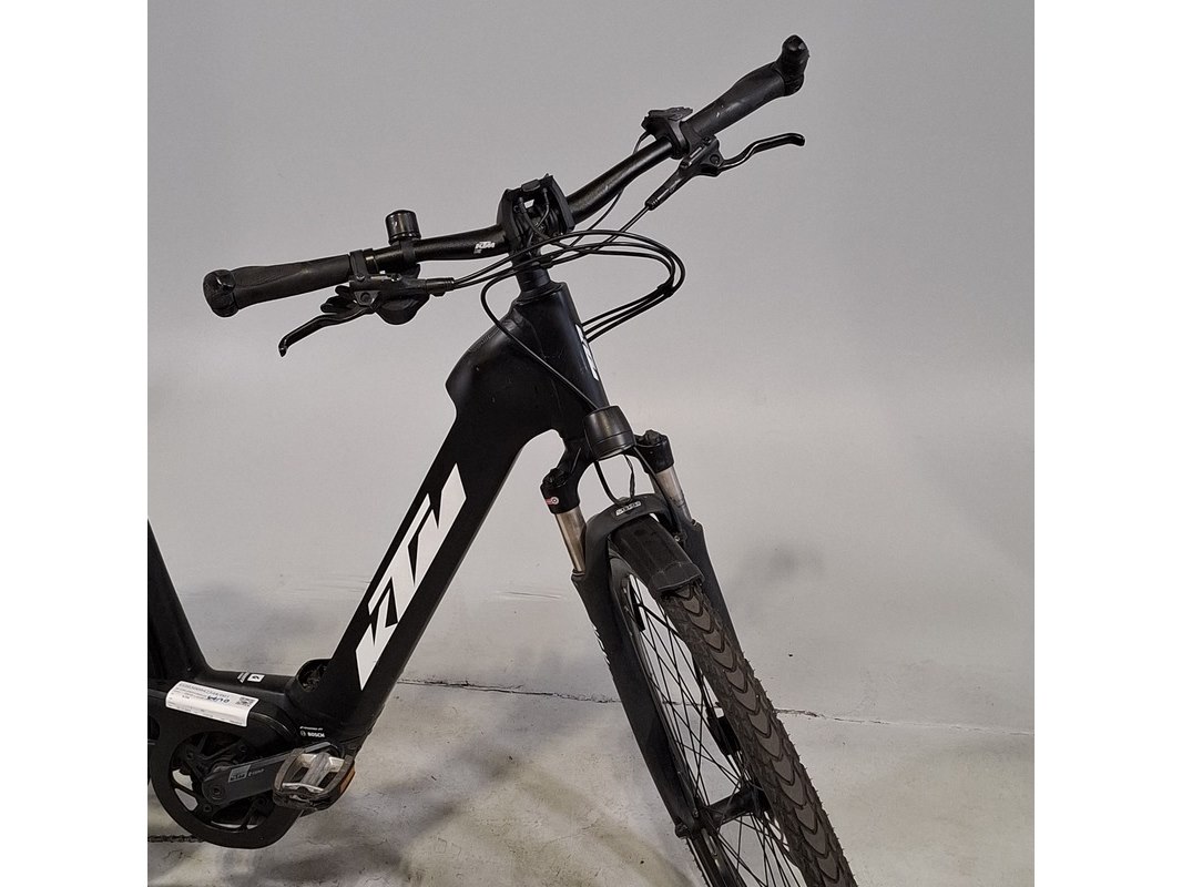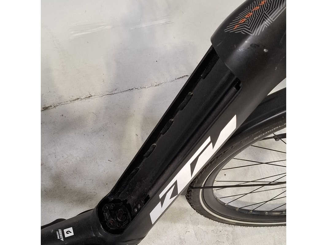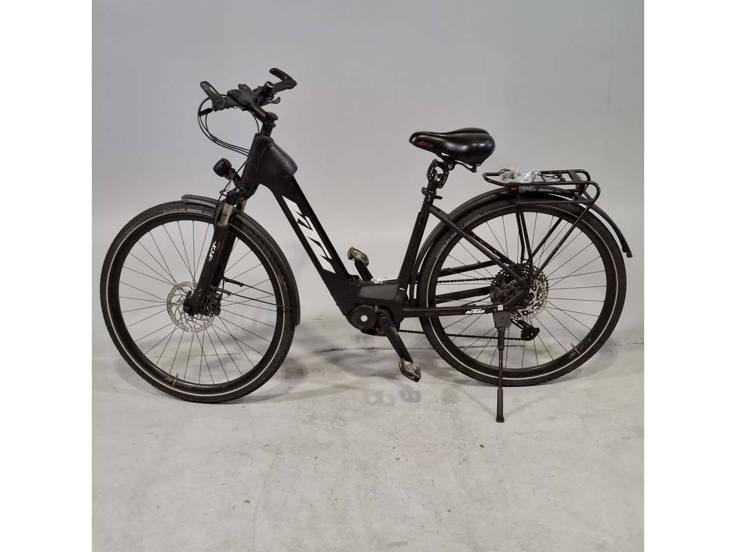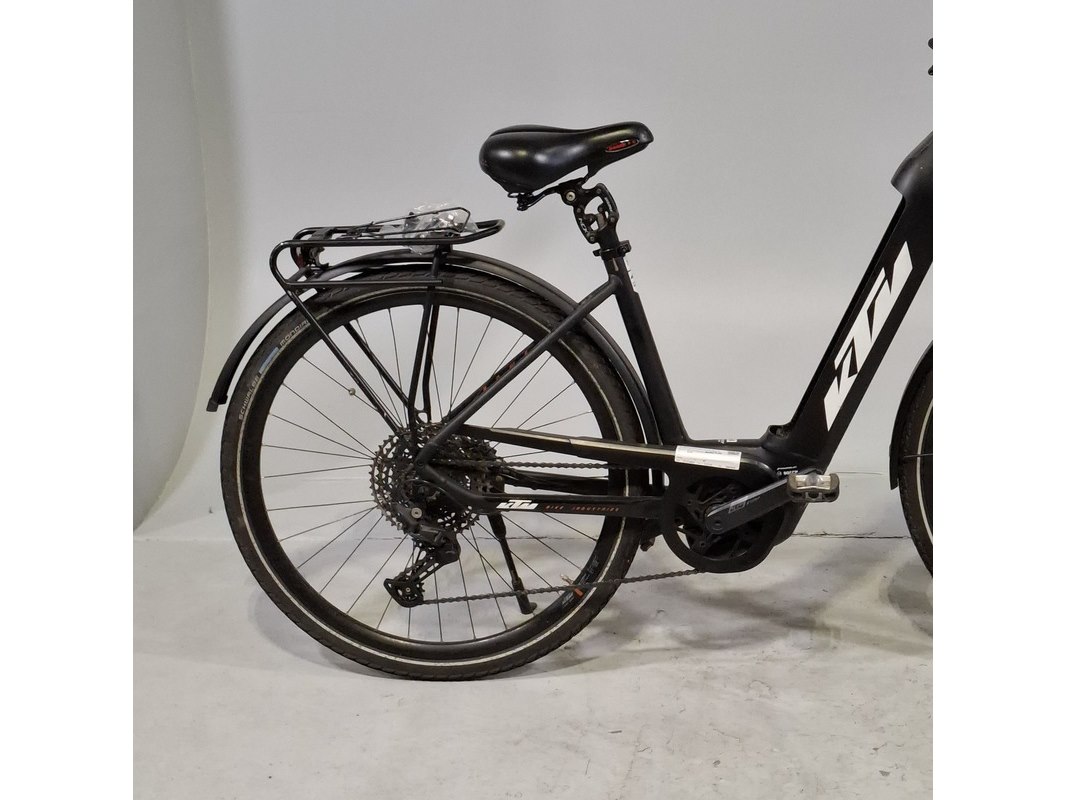 Merk: KTM Product: Elektrische damesfiets Afmeting: Framemaat 46 cm / maat S Conditie: gebruikt Specificaties: Geveerde voorvork 10 versnellingen Schijfrem voor en achter Exclusief fietscomputer, accu en acculader. Afdekplaat accu ontbreekt.