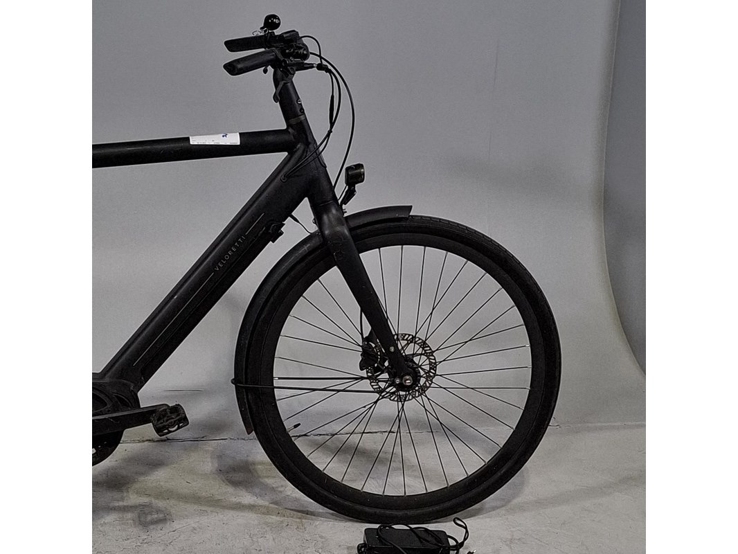 Merk: Veloretti Product: Elektrische herenfiets Afmeting: Framemaat ca. 60 cm Specificaties: Accu hangt los: fietsomputer gaat niet aan. Inclusief acculader.