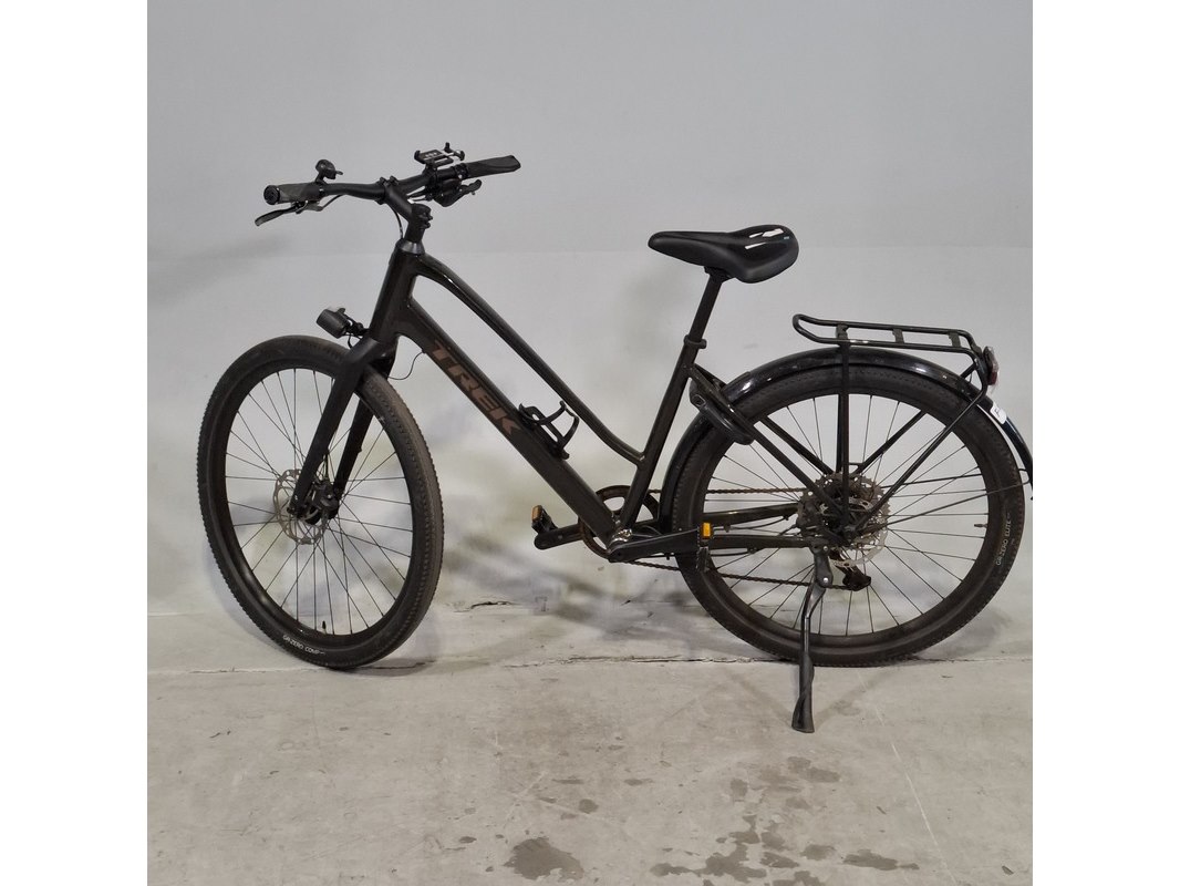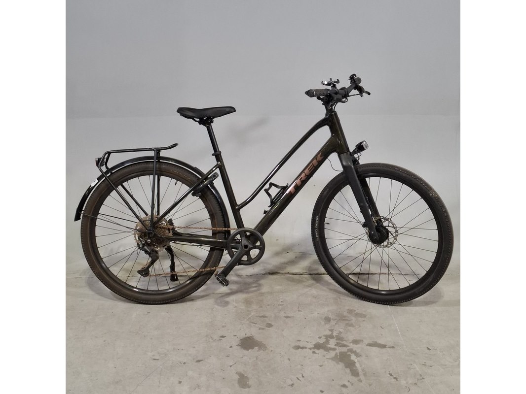 Merk: Trek Product: Damesfiets Afmeting: Framemaat ca. 47 cm Conditie: gebruikt Specificaties: 9 versnellingen Schijfrem voor en achter