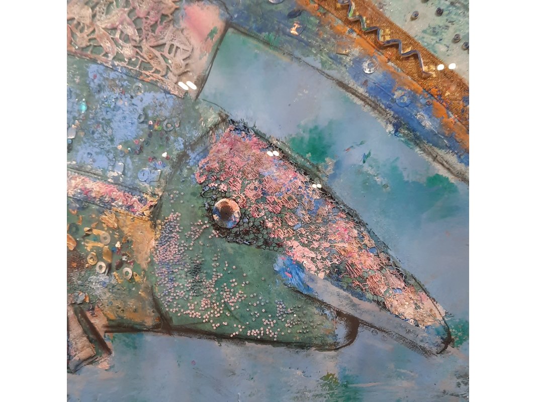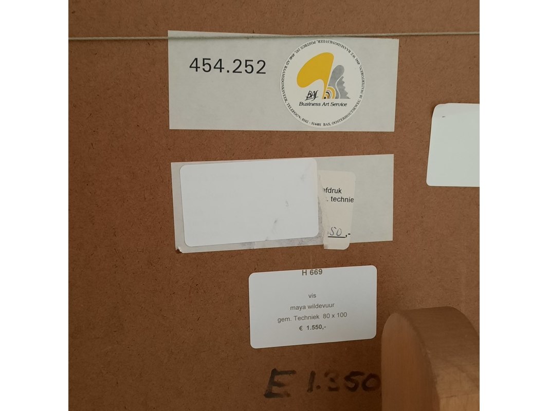 Kunstwerk, gemengde techniek, maya wildevuur, vis, 1990