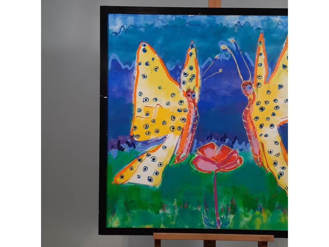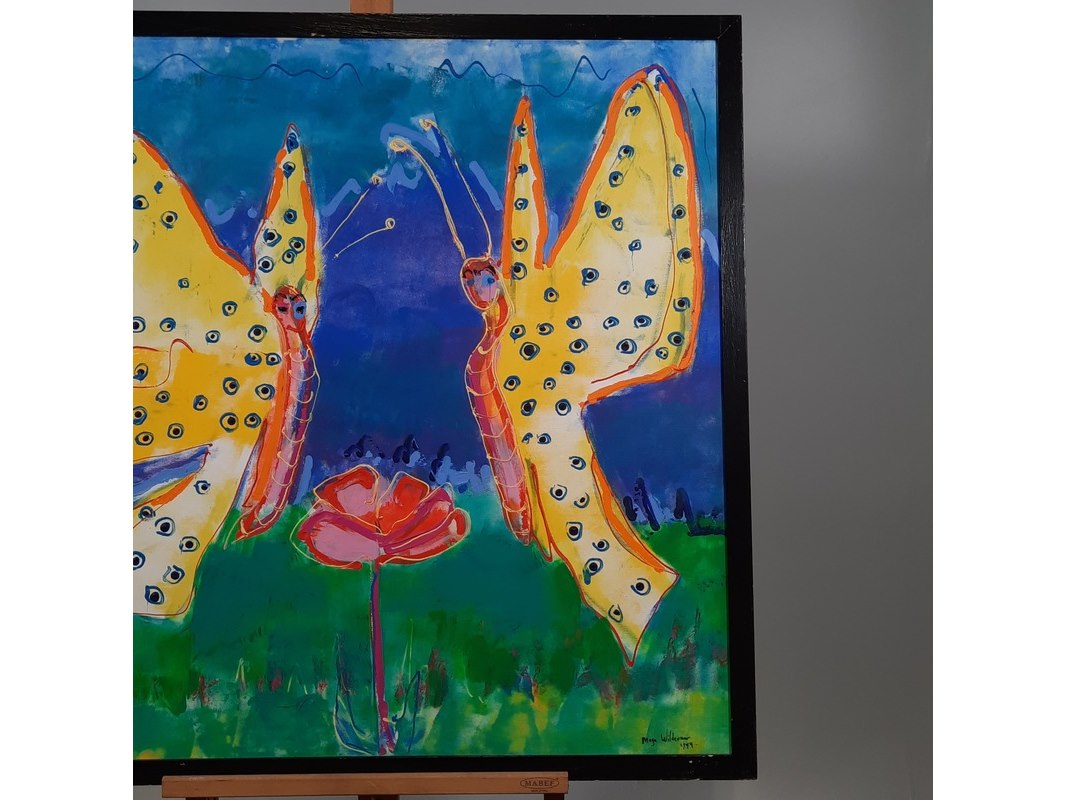 Acryl schilderij, maya wildevuur, vlinders, 1994