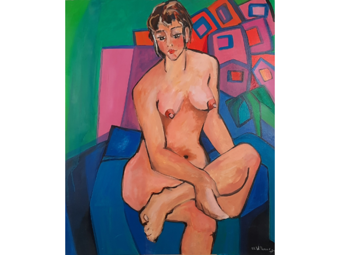 Merk: Maya Wildevuur Product: Acryl schilderij Afmeting: HxB ca. 120x100 cm. Conditie: gebruikt