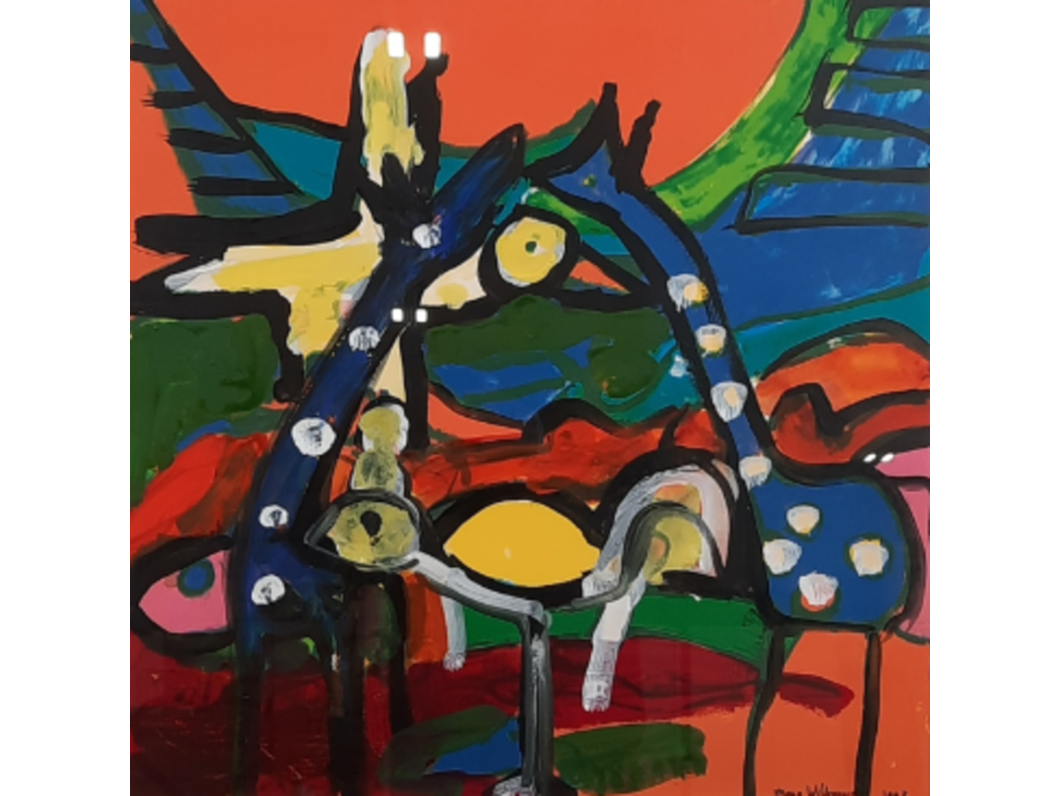 Kunstwerk, gemengde techniek, maya wildevuur, dieren, 1993