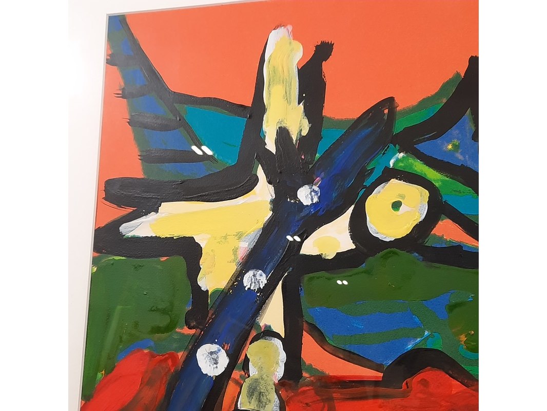 Merk: Maya Wildevuur Product: Kunstwerk, gemengde techniek Afmeting: HxB ca. 82x82 cm. BouwJaar: 1993 Conditie: gebruikt