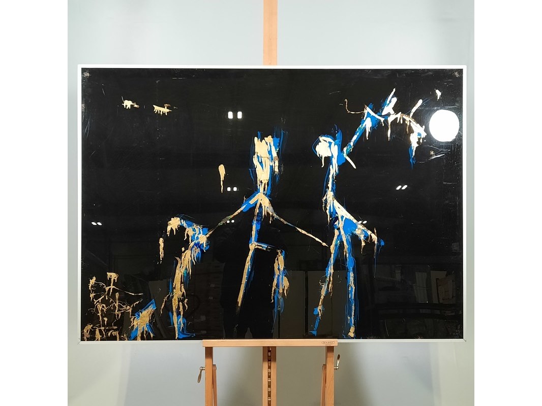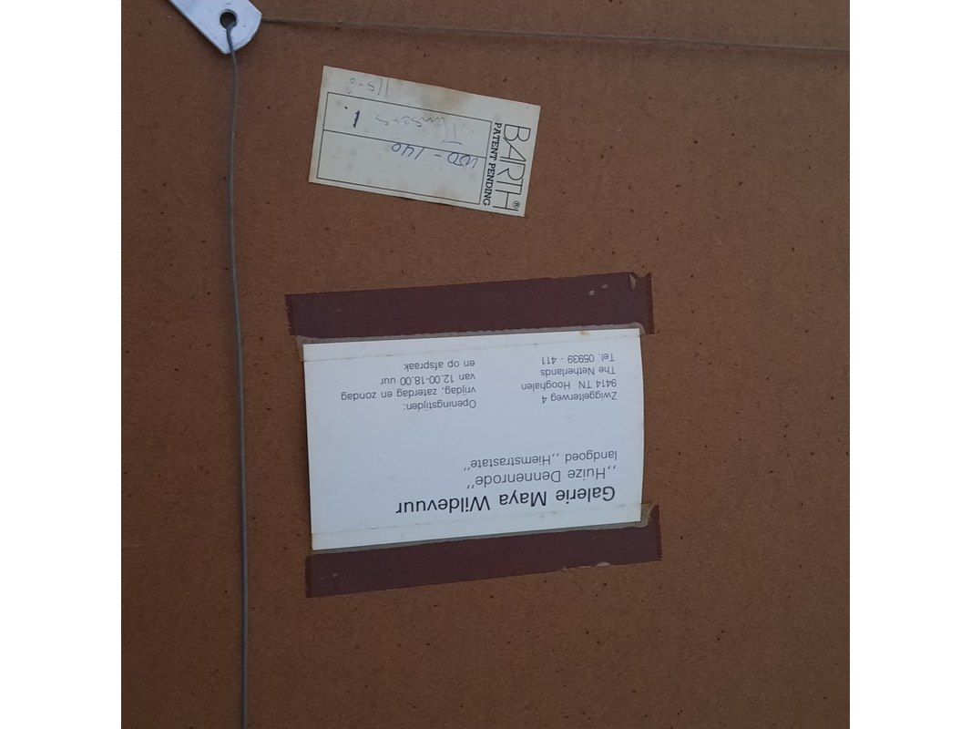 Merk: Maya Wildevuur Product: Kunstwerk Afmeting: HxB ca. 102x141 cm. BouwJaar: 1988 Conditie: gebruikt Specificaties: Diverse barsten in glas, lijst beschadigd