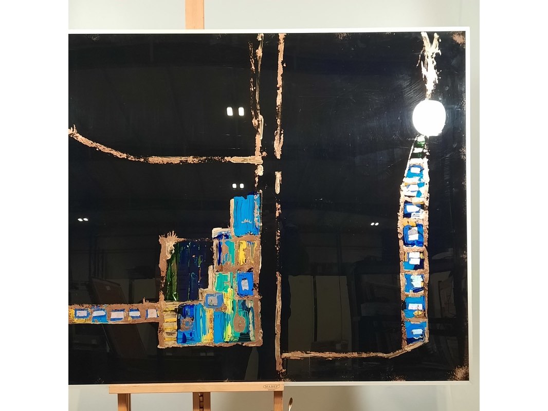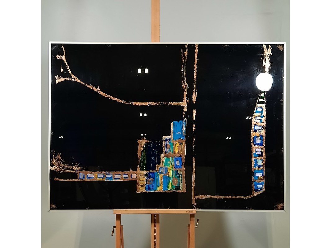 Merk: Maya Wildevuur Product: Kunstwerk, gemengde techniek Afmeting: HxB ca. 102x142 cm. Conditie: gebruikt