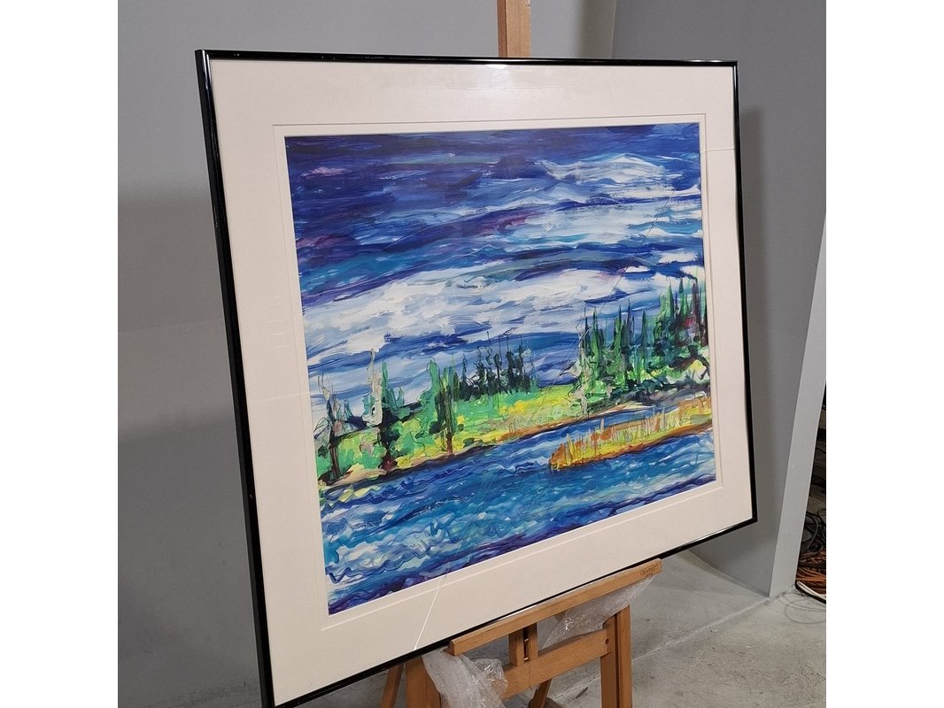 Merk: Maya Wildevuur Product: Acryl schilderij Afmeting: Hxb ca. 92x112 cm BouwJaar: 1991 Specificaties: Barst in glas.