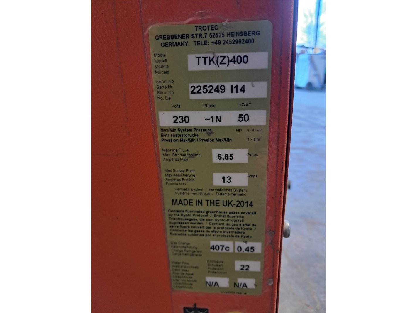 Merk: Trotec Product: Bouwdroger 75L 230V BouwJaar: 2014
