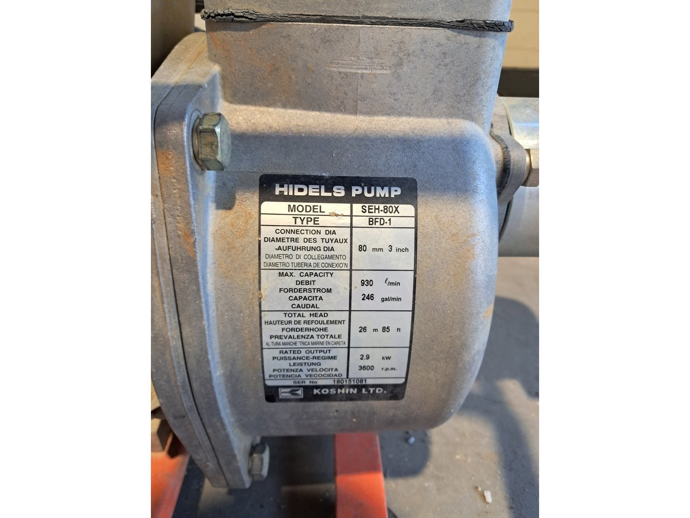 Vuilwaterpomp 54m³ benzine koshin, seh-80x, bouwjaar 2018