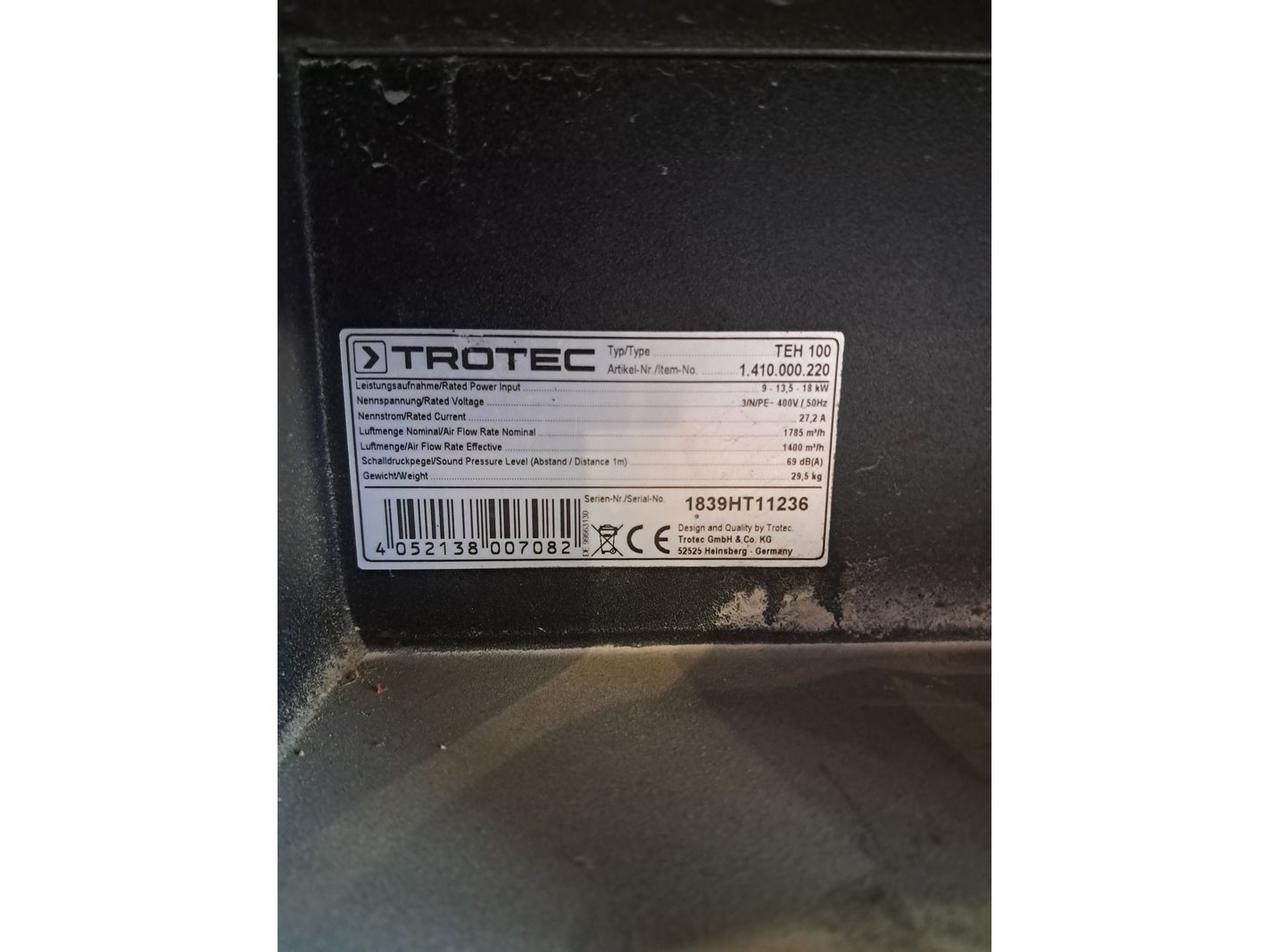 Merk: Trotec Product: Elektroheater 18kW 400V BouwJaar: 2018