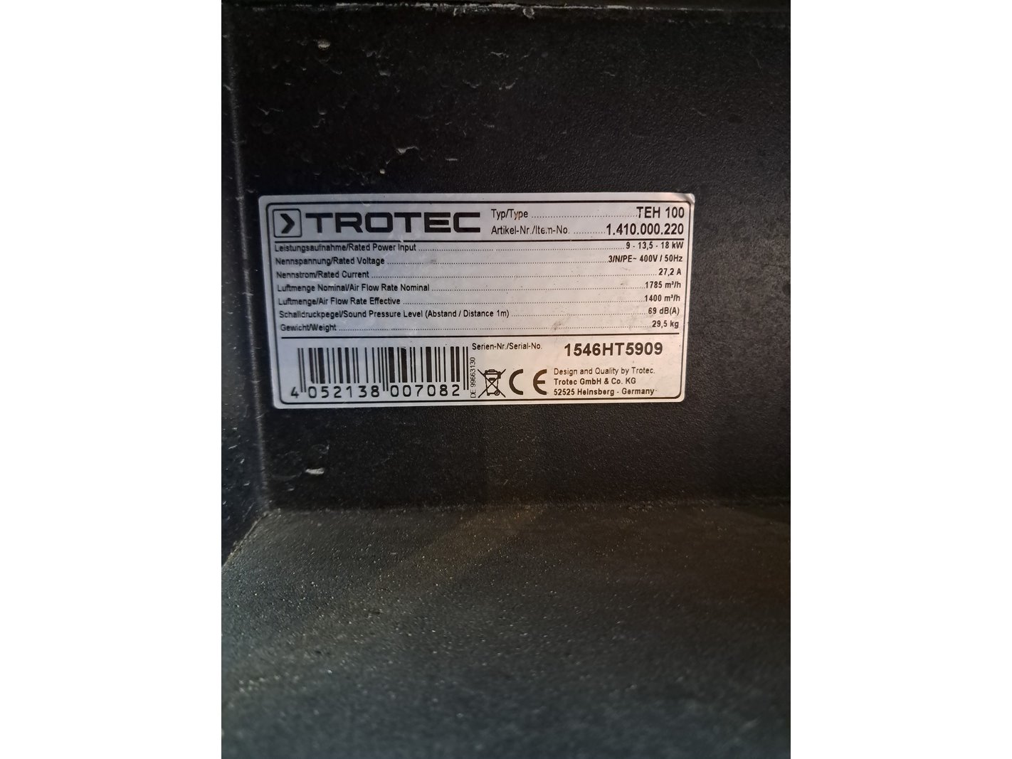 Merk: Trotec Product: Elektroheater 18kW 400V BouwJaar: 2015