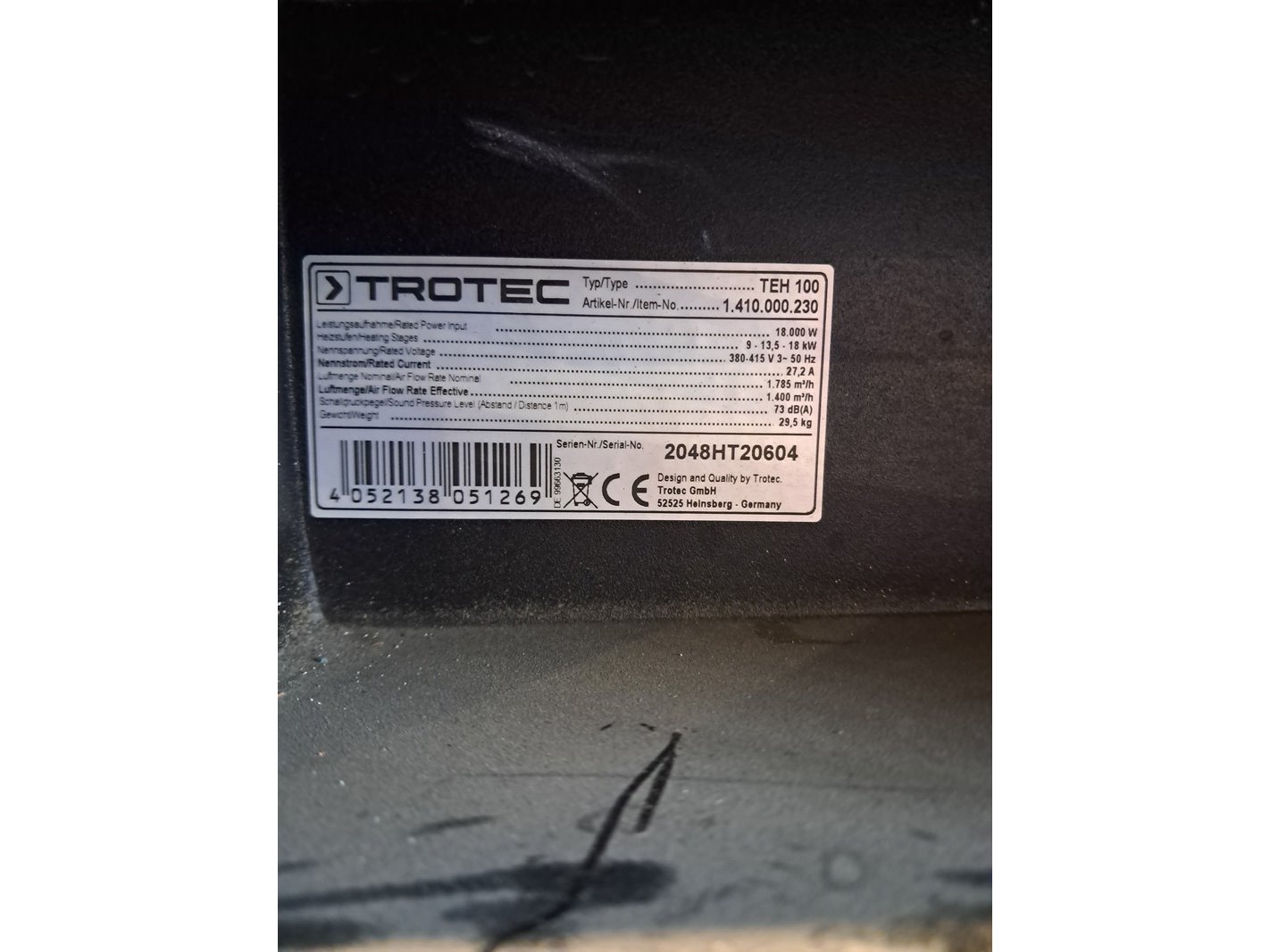 Merk: Trotec Product: Elektroheater 18kW 400V BouwJaar: 2020