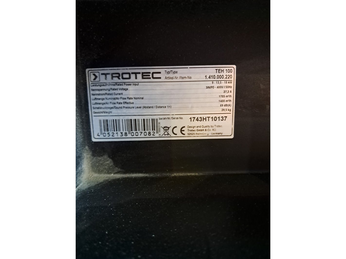 Merk: Trotec Product: Elektroheater 18kW 400V BouwJaar: 2017