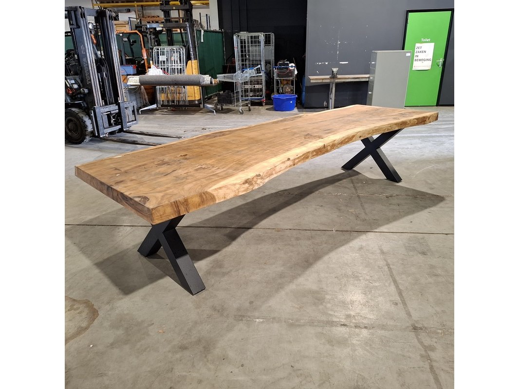 Product: Boomstamtafel | Suar Afmeting: Lxbxh ca. 353x115x99x78cm Specificaties: Bladdikte ca.: 8cm Voorzien van: X poten