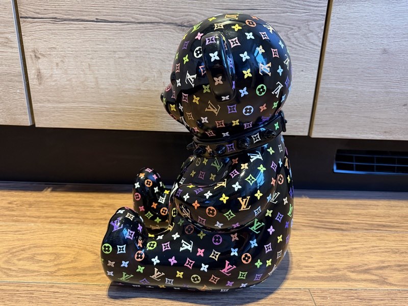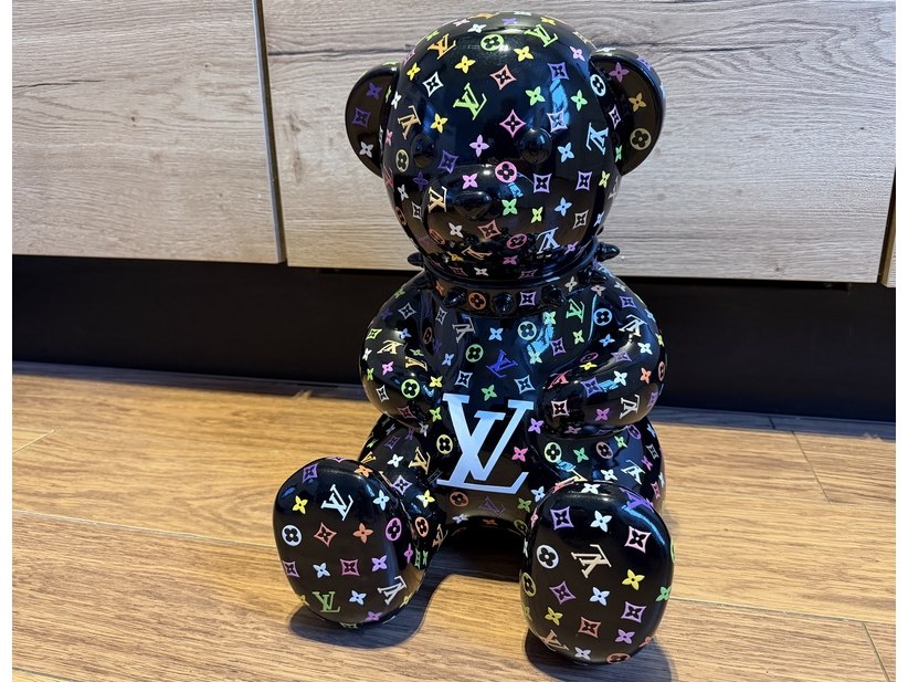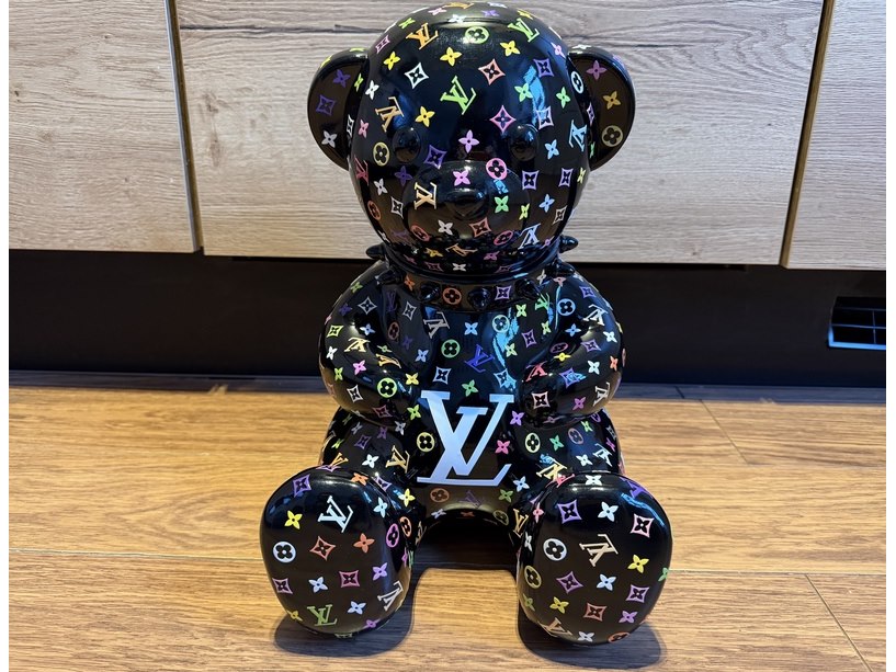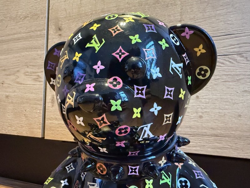 Product: Bad Beer Sculptuur Materiaal: Fiberglas Afmeting: 40x30 Conditie: Nieuw Specificaties: Bad Beer Sculptuur met gekleurde Louis Vuitton Logo's