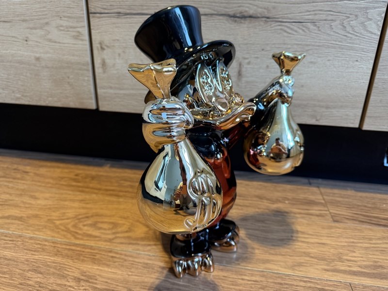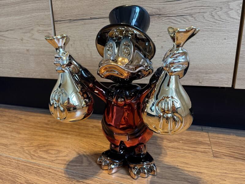 Merk: Lior24 Product: Dagobert Duck beeld Kleur: Rood Materiaal: Resin Afmeting: 42x35 Conditie: Nieuw