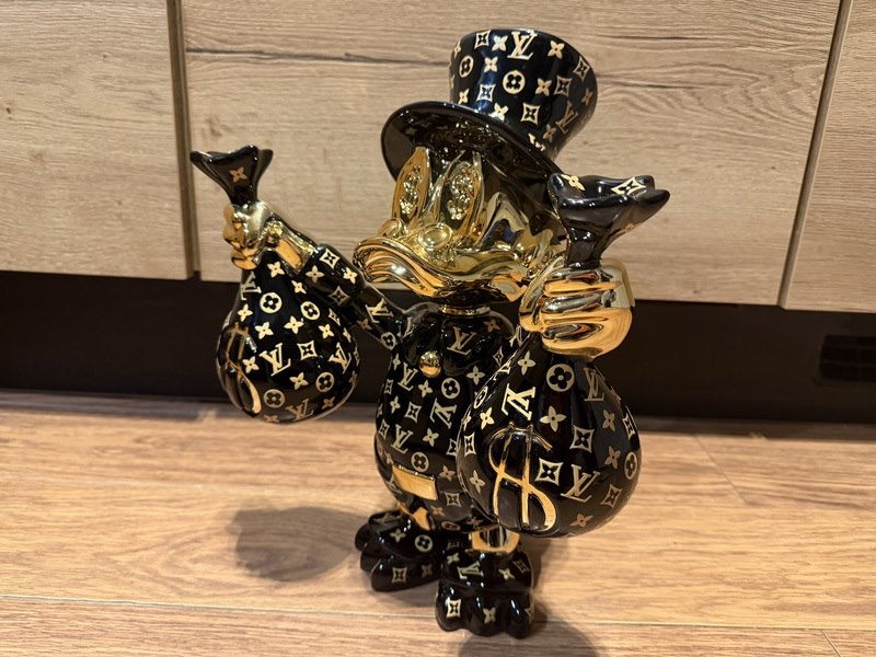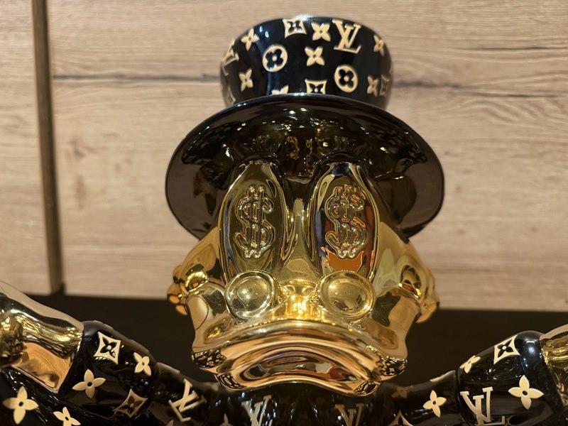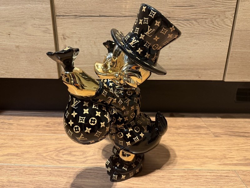 Merk: Lior24 Product: Dagobert Duck beeld Kleur: Zwart Materiaal: Resin Afmeting: 42x35 Conditie: Nieuw Specificaties: Dagobert Duck beeld met Louis Vuitton print