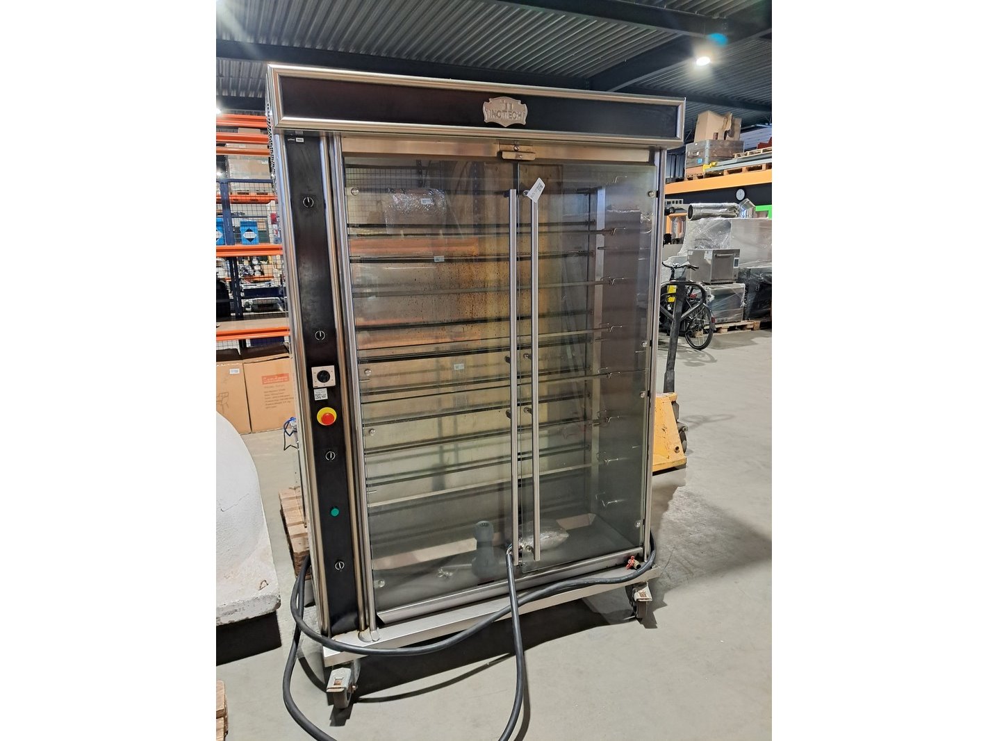Merk: Inotech Product: Rotisserie Afmeting: hxbxd Ca. 200cm x 135cm x 65cm Specificaties: Voltage: 400V Wattage: 26.4kW