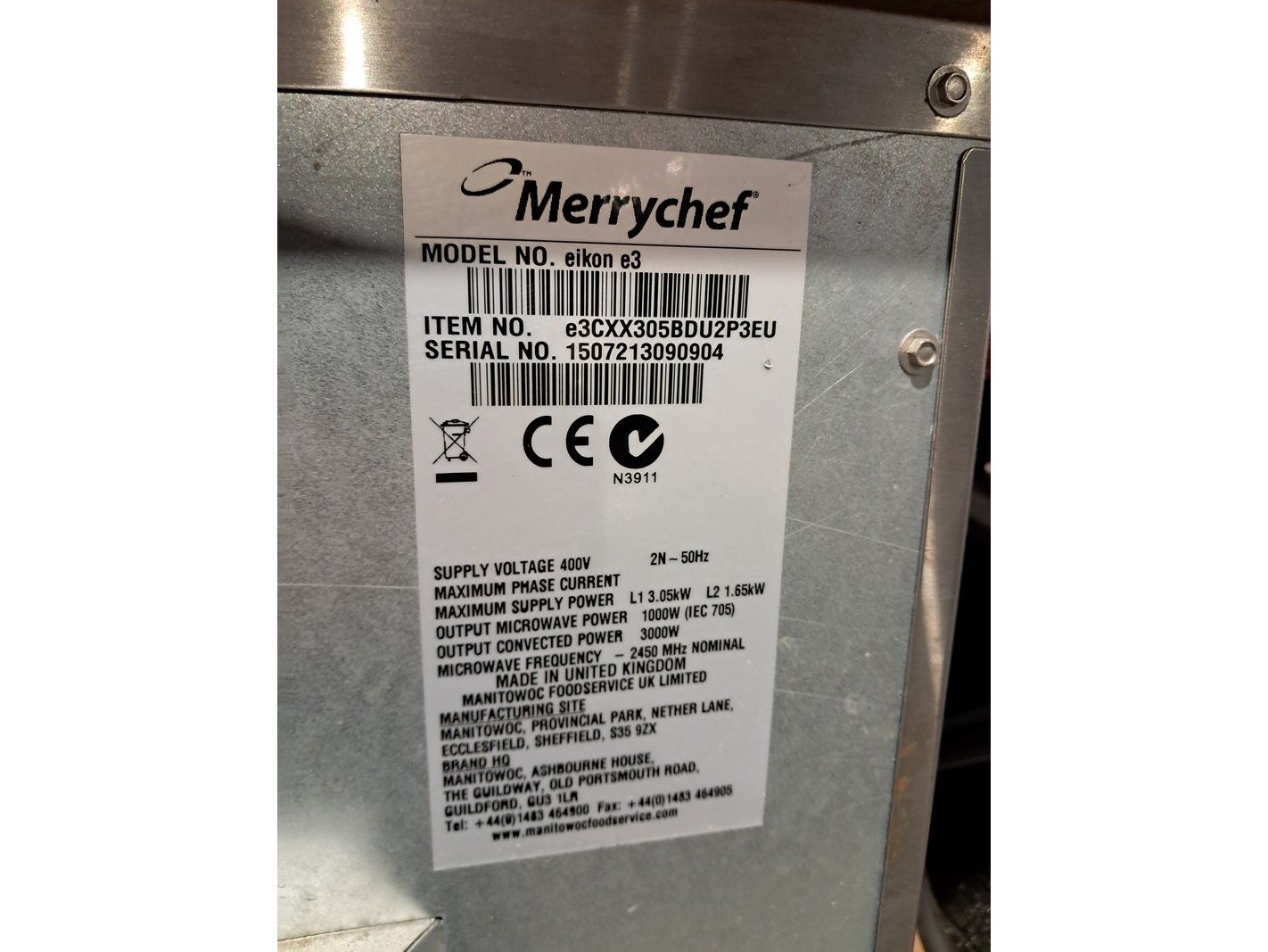 Merk: Merrychef Product: Oven Conditie: Gebruikt Specificaties: Voltage: 400V Wattage: 3000W Serie Nr. 15707213090904