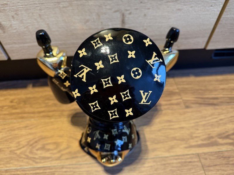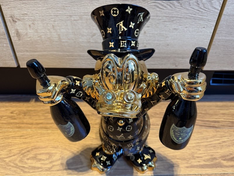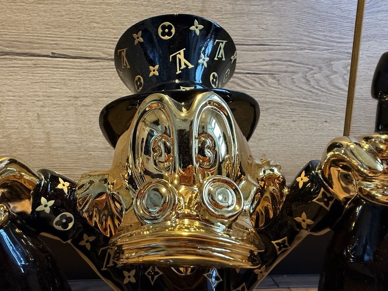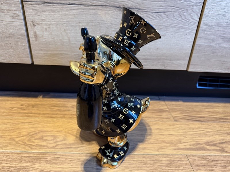 Merk: Lior24 Product: Dagobert Duck DOM PÉRIGNON Kleur: Zwart Materiaal: Resin Afmeting: 42x35 Conditie: Nieuw Specificaties: Dagobert Duck Beeld met Dom Pérignon flessen en een Louis Vuitton outfit.