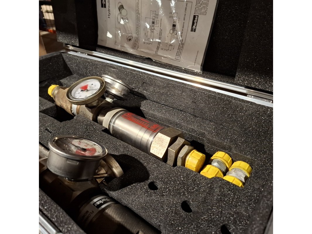 Merk: Parker UCC Product: Hydrauliek Flowmeter Materiaal: Divers Afmeting: 60x18x33 Conditie: Gebruikt Specificaties: 2x hydrauliek flowmeter in originele kist, met adapters, slangen, reserve delen en handleiding. Voor meten en testen van debiet, druk en temperatuur. 10-110L/min, 350 bar en 120 graden.