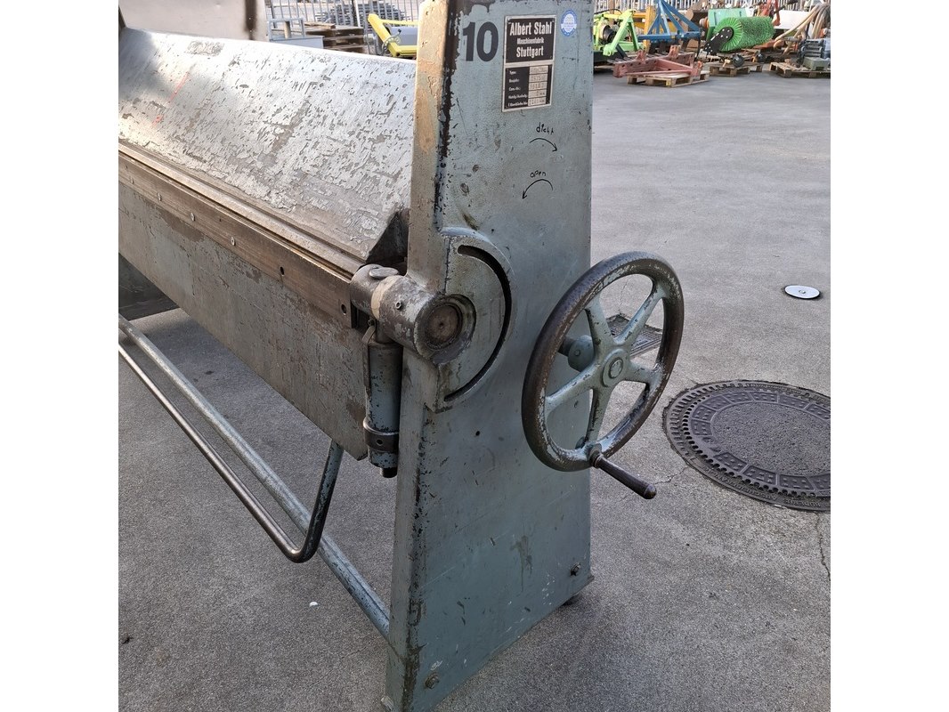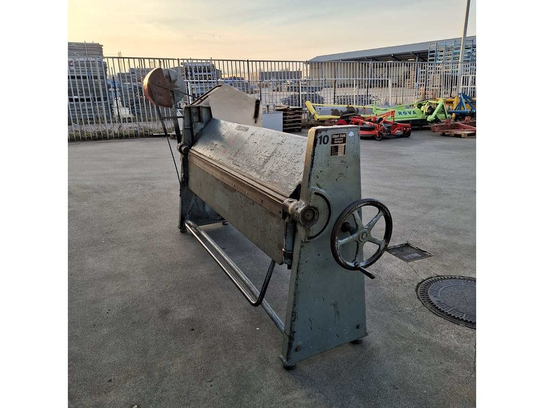 Merk: Albert Stahl Product: Plaatwerkzetbank Afmeting: Lxbxh ca. 302x117x179cm BouwJaar: 1975 Conditie: Gebruikt Specificaties: Bouwjaar: 1975 Bruikbaar oppervlak/uitvoer: 2 mm Werkbreedte: 2040 mm