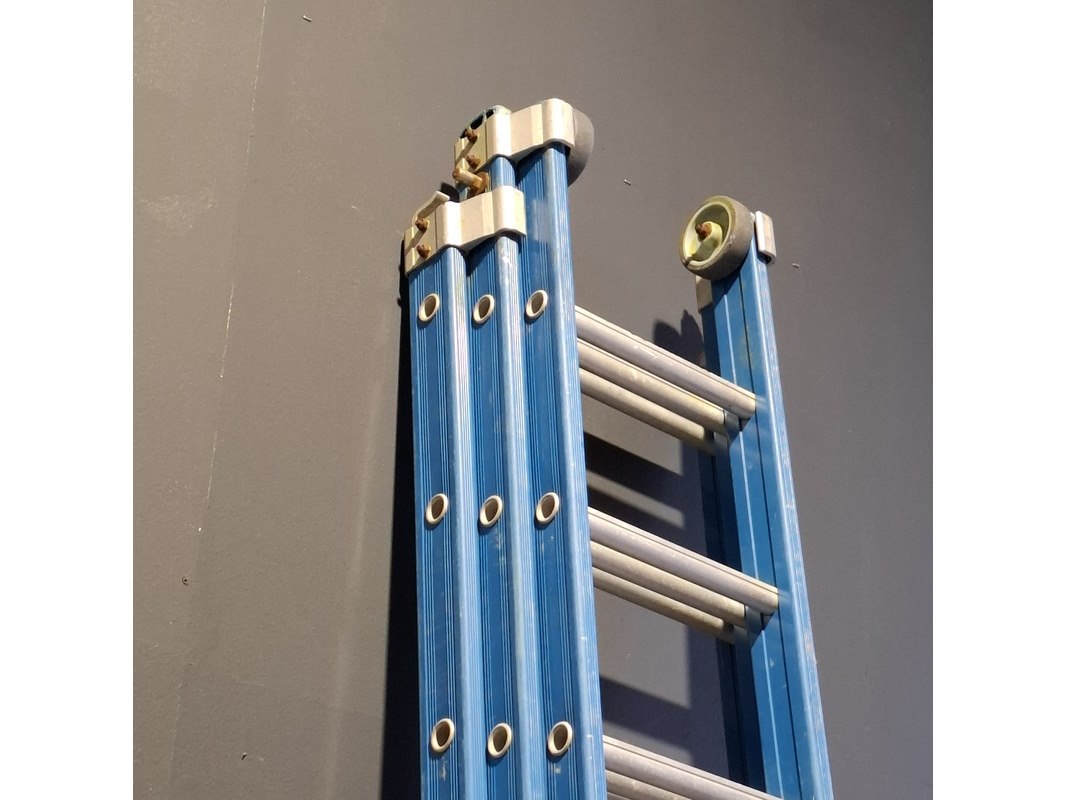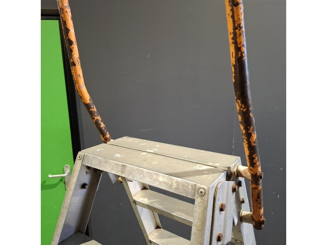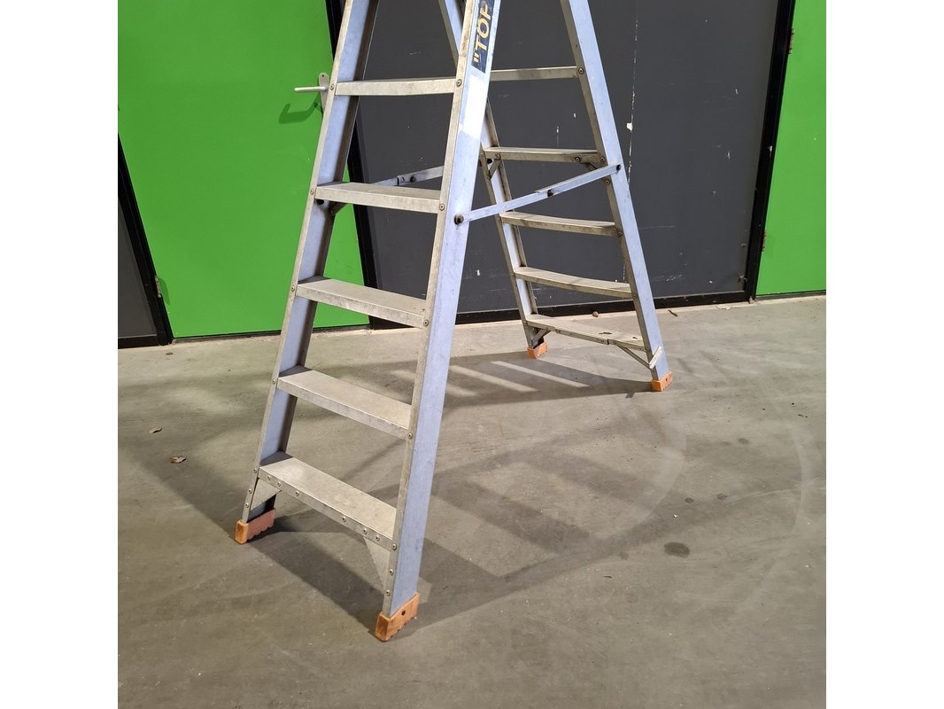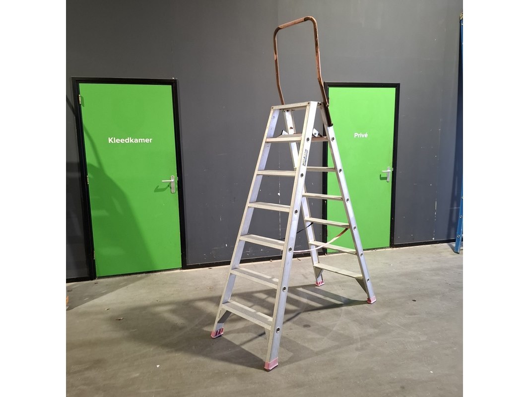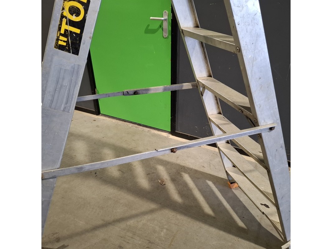 Product: Ladder en 2x A trap Conditie: Gebruikt Specificaties: Bestaande uit: - Ladder 3x12 trede - 2x A trap 2x7 trede