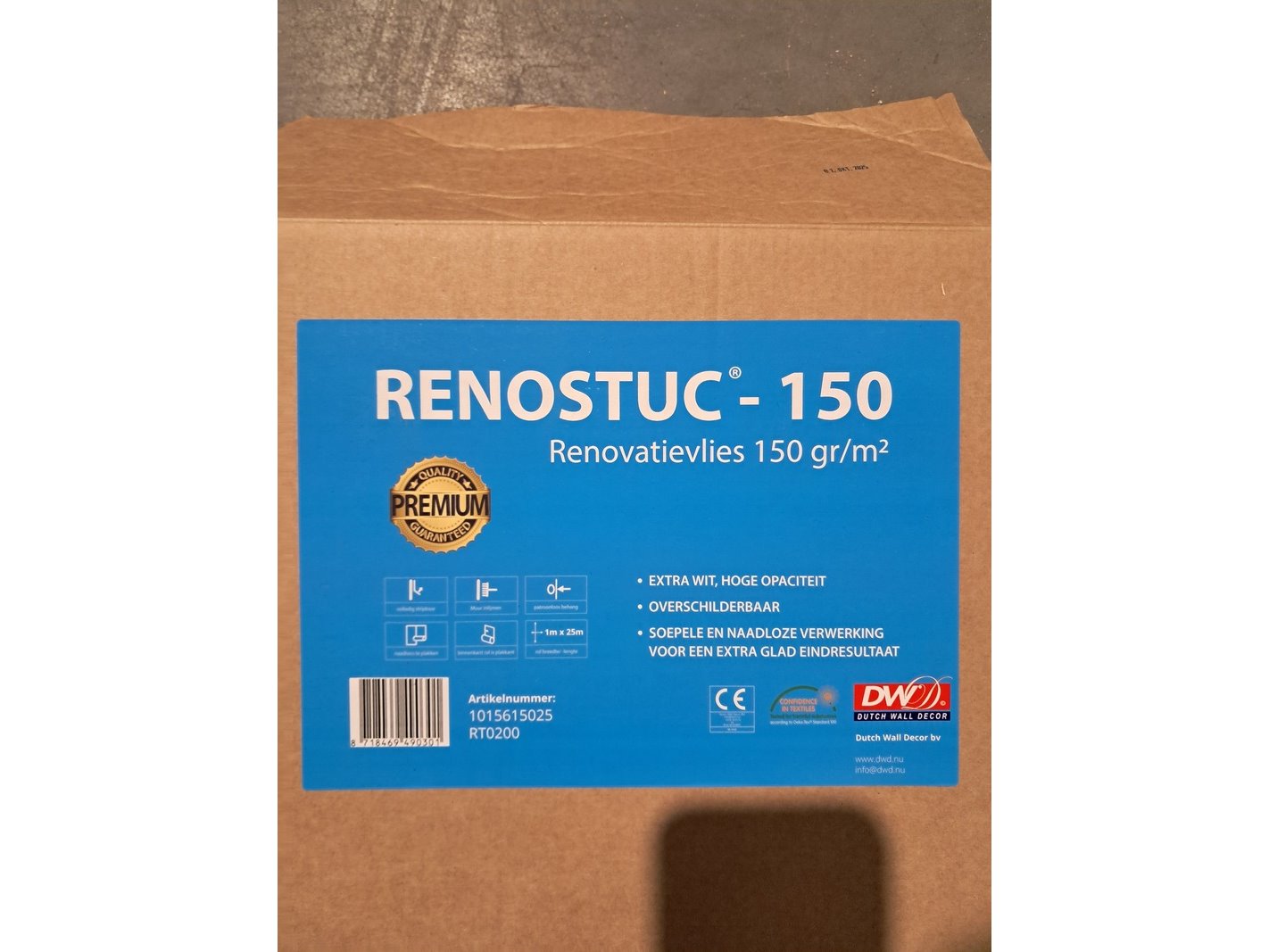 Merk: Divers Product: Renovlies 150 gram + lijm 10 liter Kleur: Wit Afmeting: 150 grams, 6 x rol 25 meter Conditie: Nieuw Specificaties: Partij Renovlies 150 meter en 150 gram zwaar met lijm