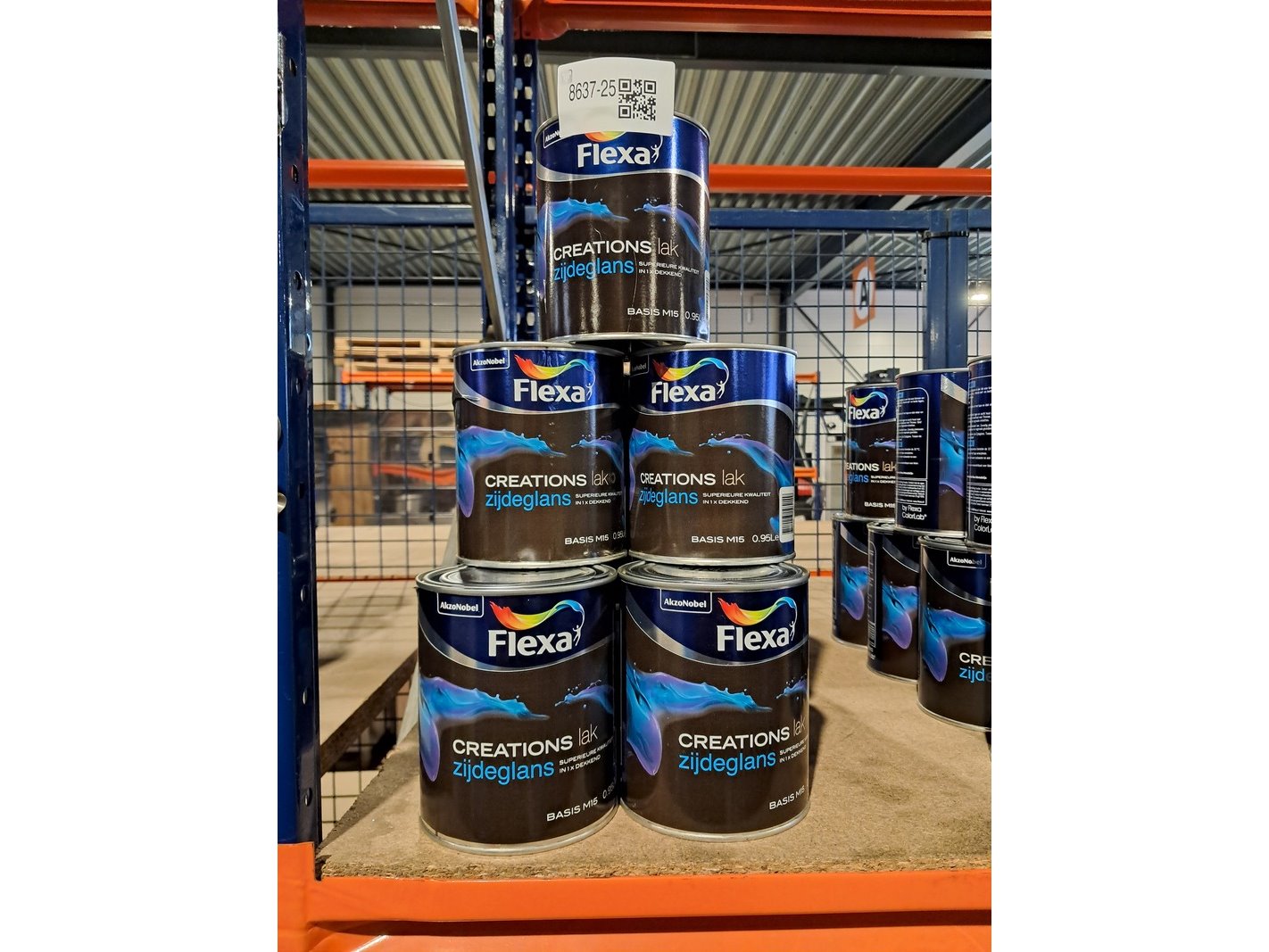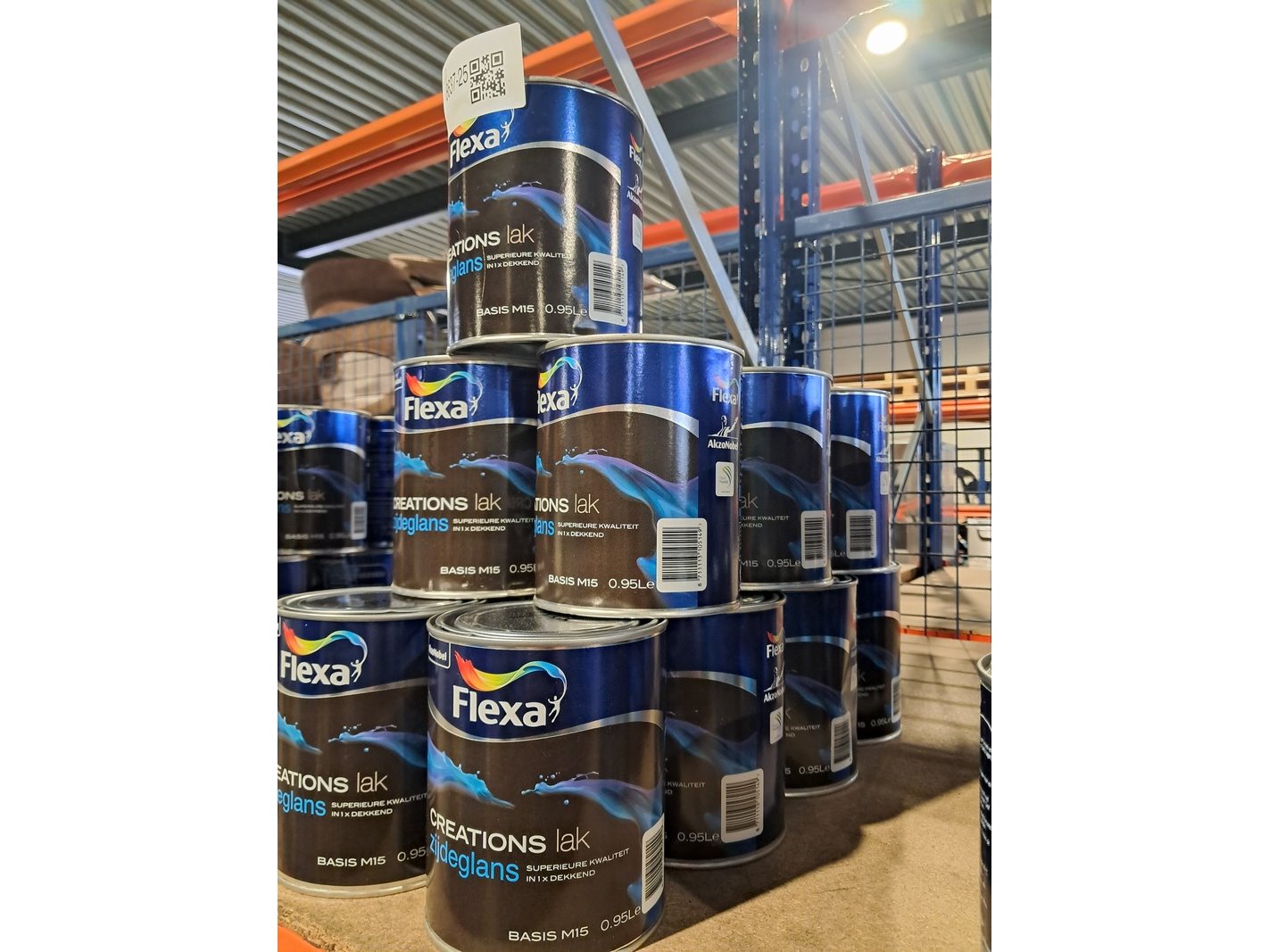 Merk: Flexa Product: Zijdeglanslak Kleur: RAL 9016 Afmeting: 15 liter Conditie: Nieuw Specificaties: Partij Flexa zijdeglanslak van goede kwaliteit, 15 liter RAL 9016