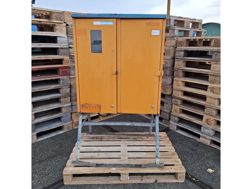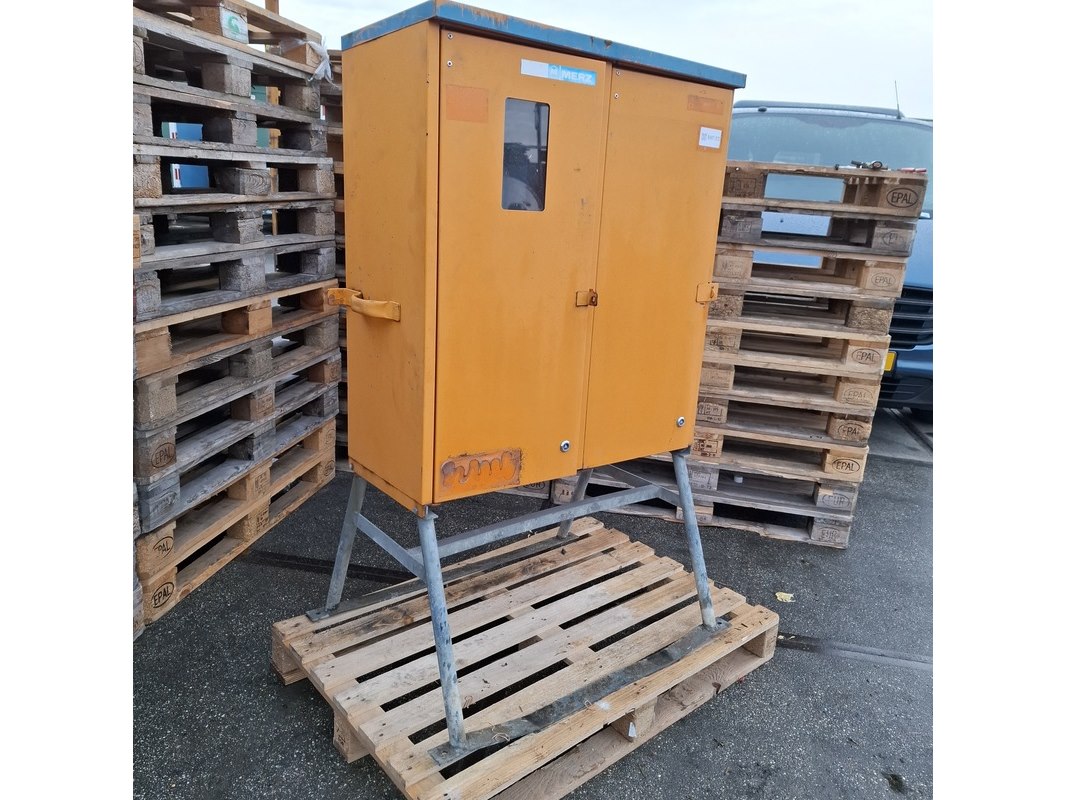 Merk: Merz Product: Bouwkast Kleur: Oranje/Blauw Materiaal: Metaal Afmeting: 140x85x70 BouwJaar: 2008 Conditie: Gebruikt
