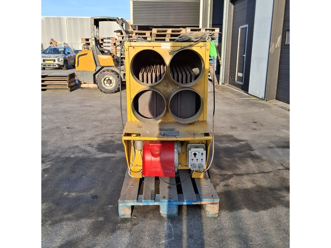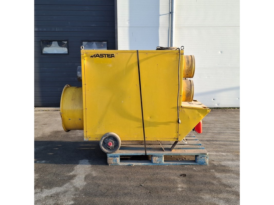 Merk: Master Product: Heater Kleur: Geel Materiaal: Metaal Afmeting: 120x180x80 BouwJaar: 2004 Conditie: Gebruikt Specificaties: Inclusief stapelbak met 4x luchtslang en 3x stuk buis