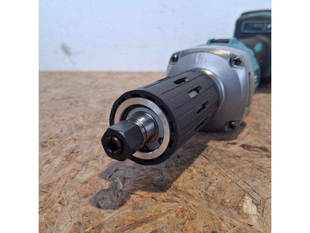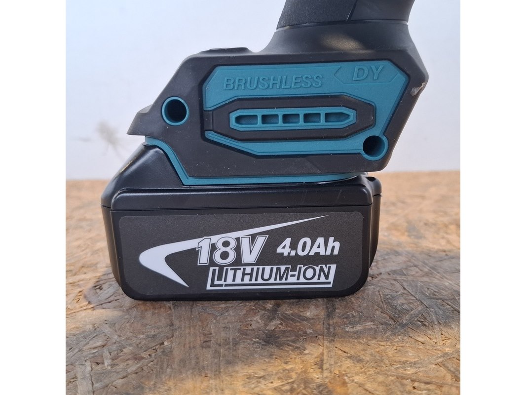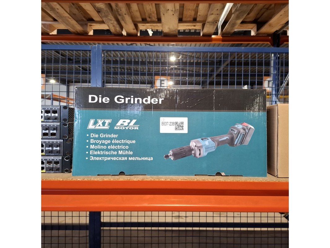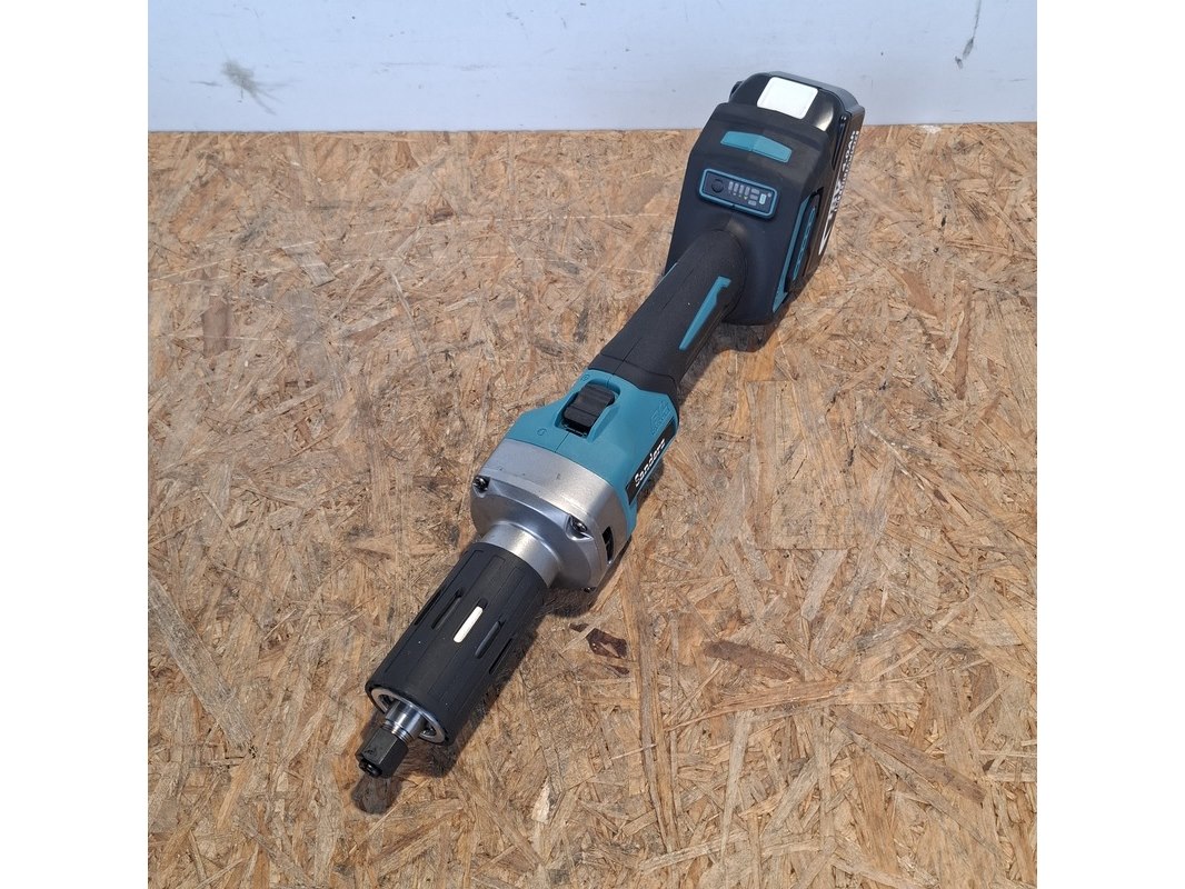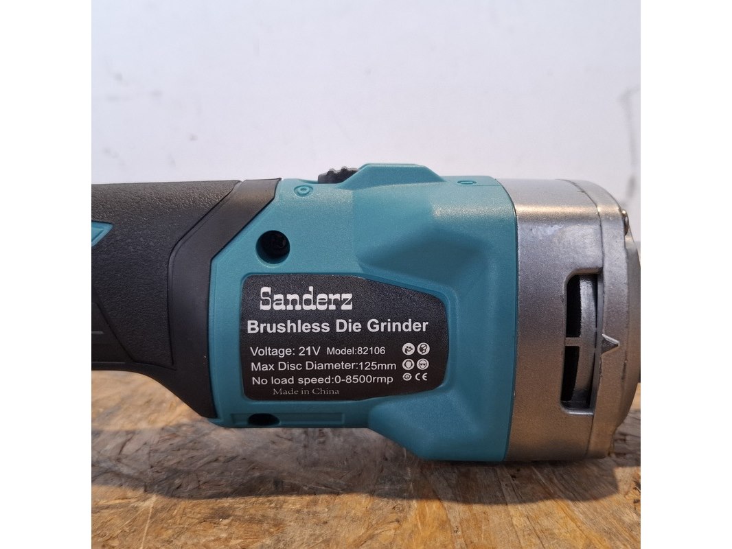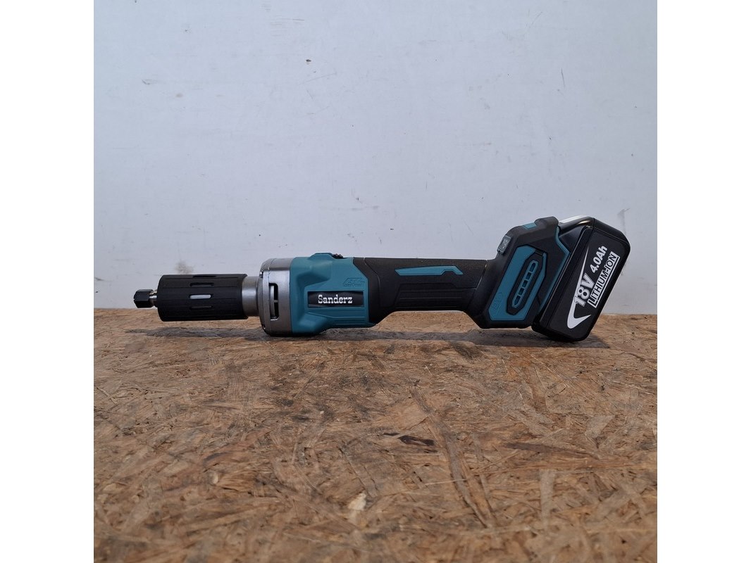Product: Rechte slijpmachine Kleur: Blauw Specificaties: Inclusief lader en 2x accu, in doos.