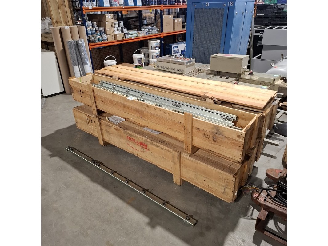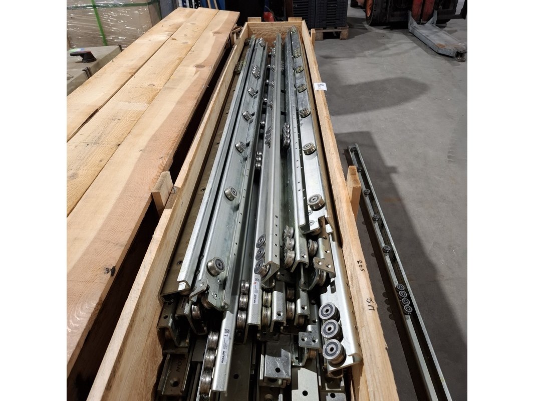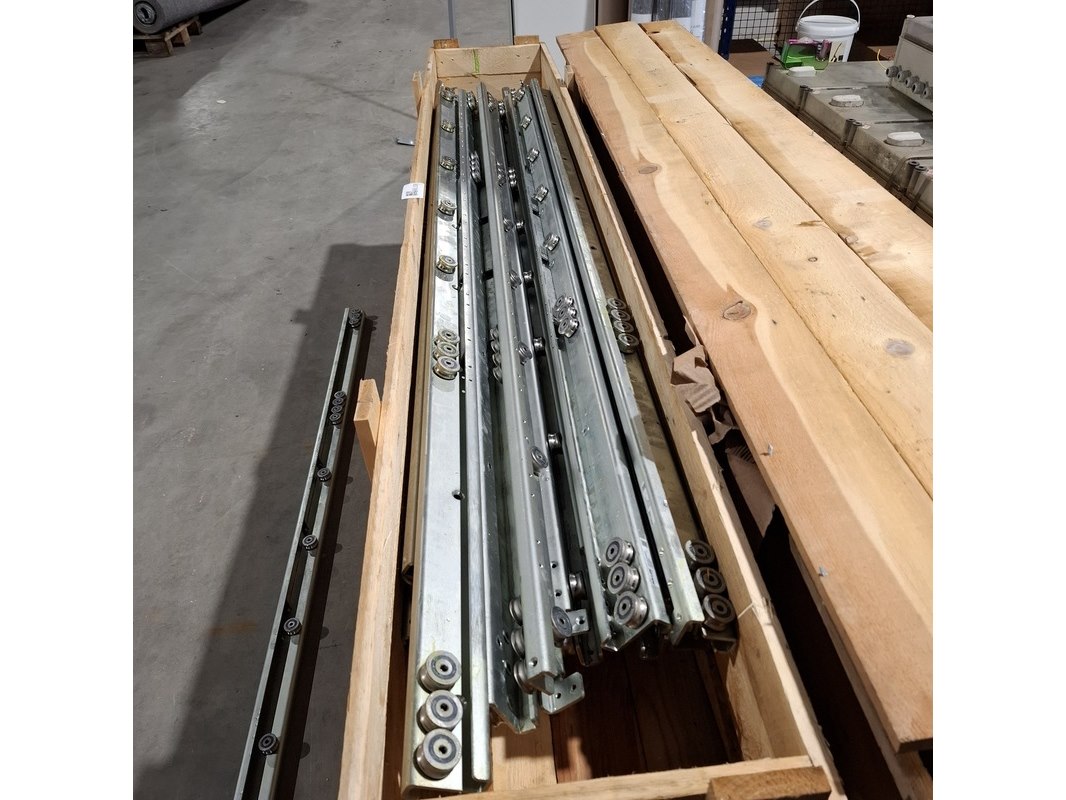 Merk: Rollon By Tinken Product: Partij industriële lineaire geleiderails Afmeting: Lengte ca. 180cm Specificaties: In 4x transport kist
