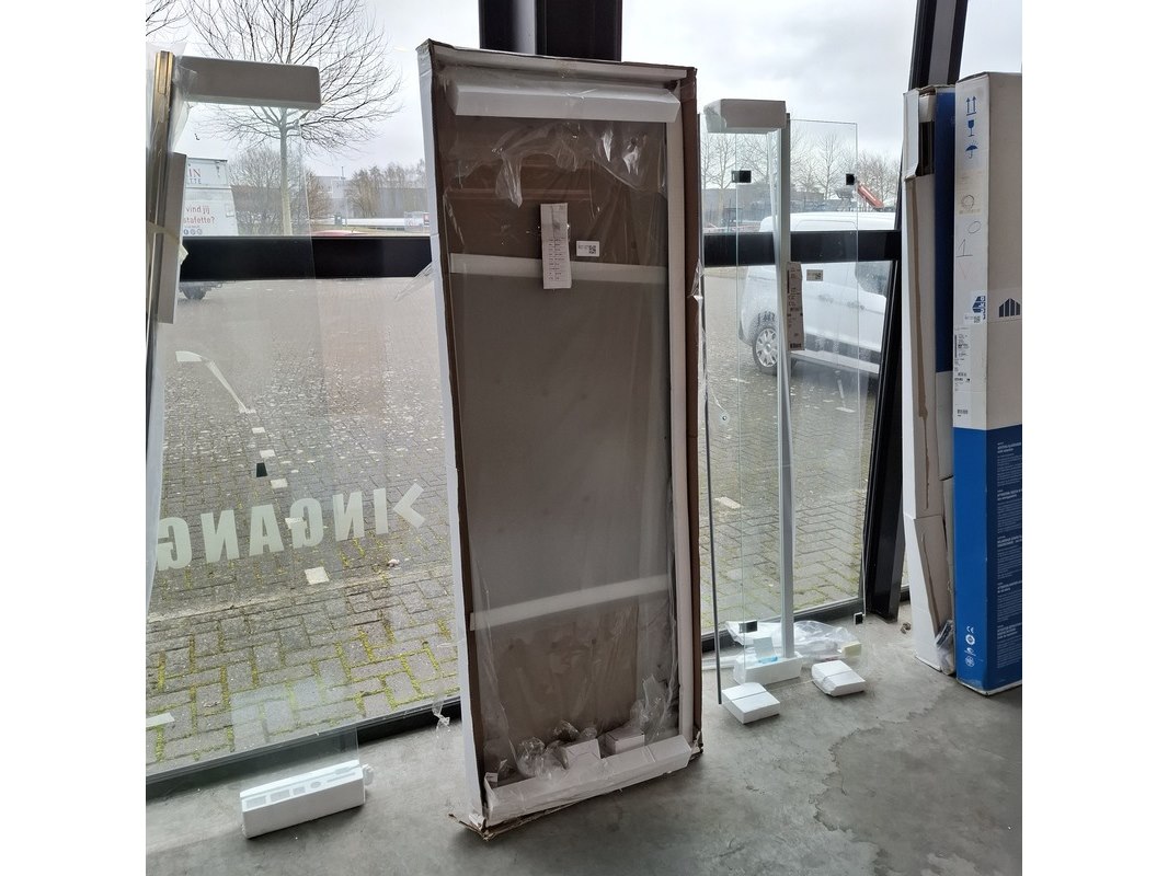 Product: Douchedeur Materiaal: veiligheidsglas Afmeting: 200x69,4cm Specificaties: Met matglas schaamband, chromen beslag, van Rijn nr. : ST0110070GS
